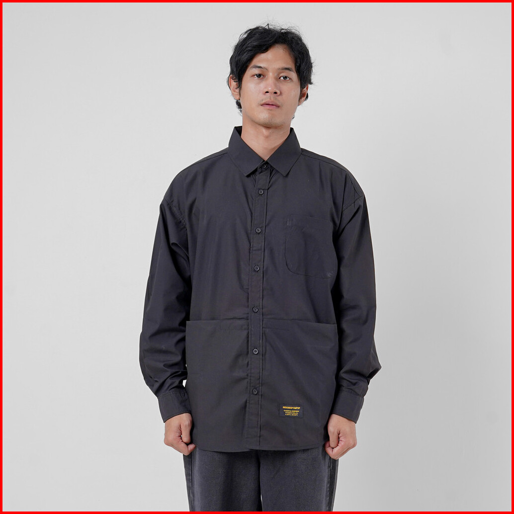 House Of Smith Kemeja Pria - Pocket Utility Long Shirt Black - Long Shirts