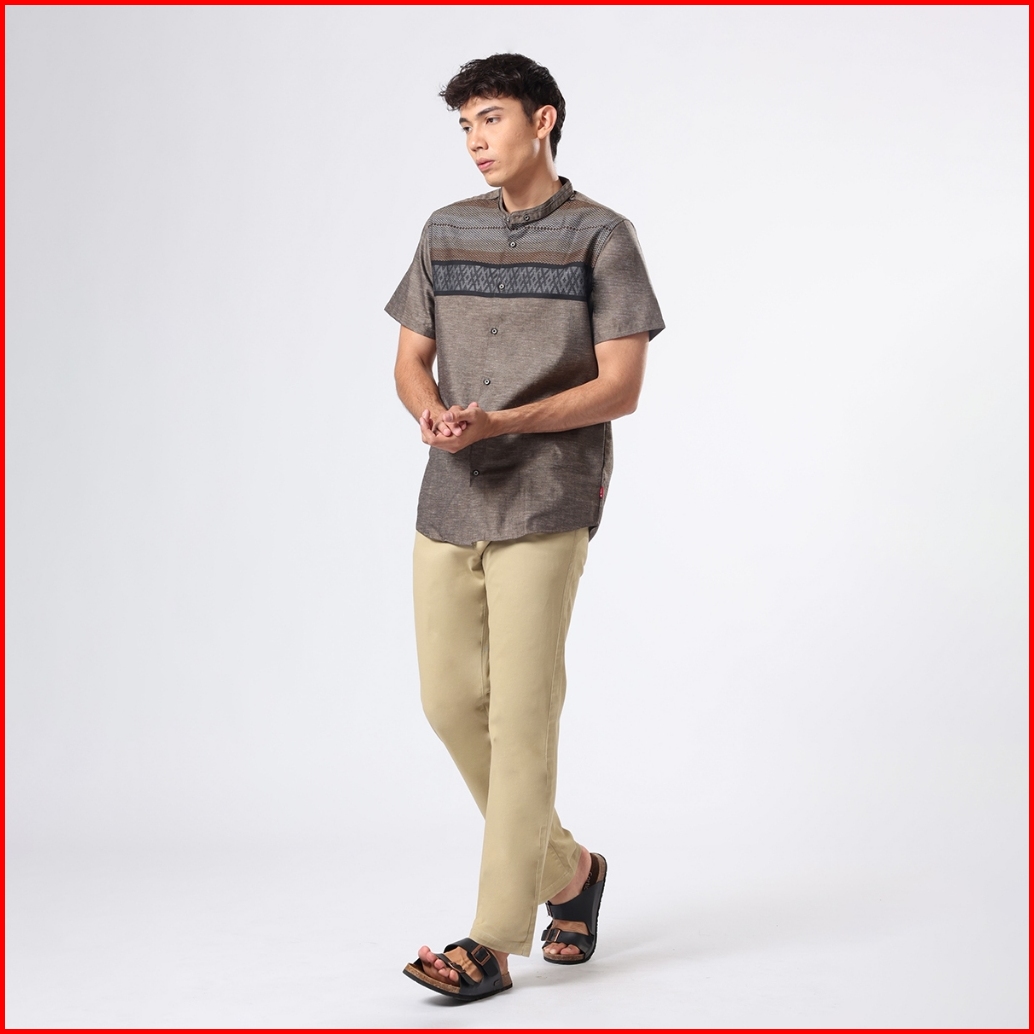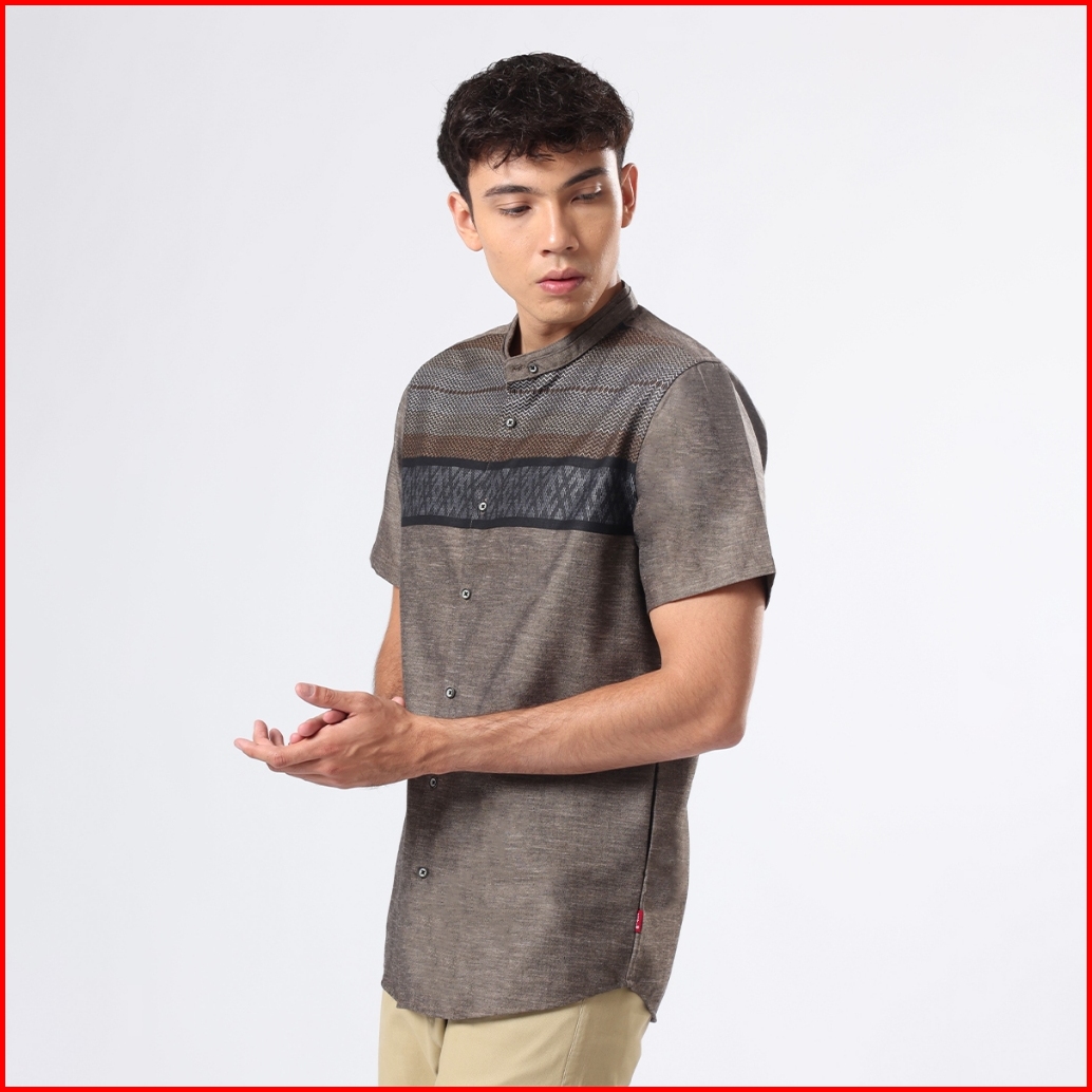 Edwin Jeans - Kemeja Koko Pria Lengan Pendek Ammar Olive Baju Muslim Pria
