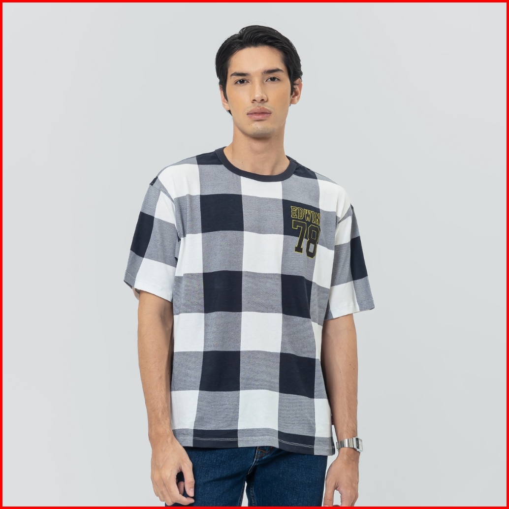Edwin Jeans - Mike Navy White Tshirt Casual Baju Kaos Pria Lengan Pendek Atasan T-shirt Graphic Tee