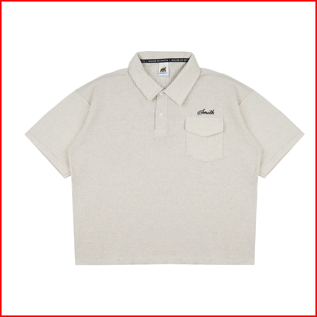House Of Smith Polo Shirt - Bloc Waffle Boxy Polo Shirt - Kaos Polo Boxy Pria