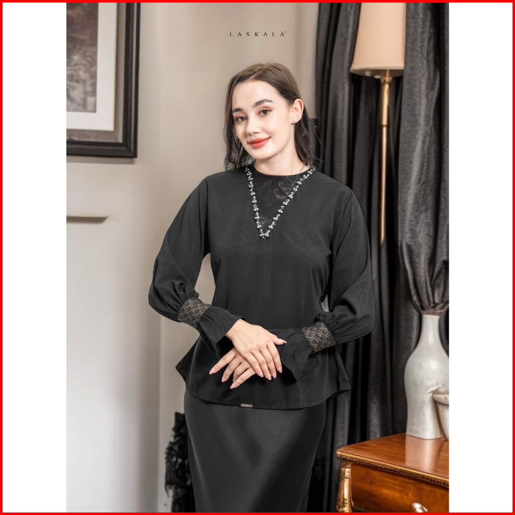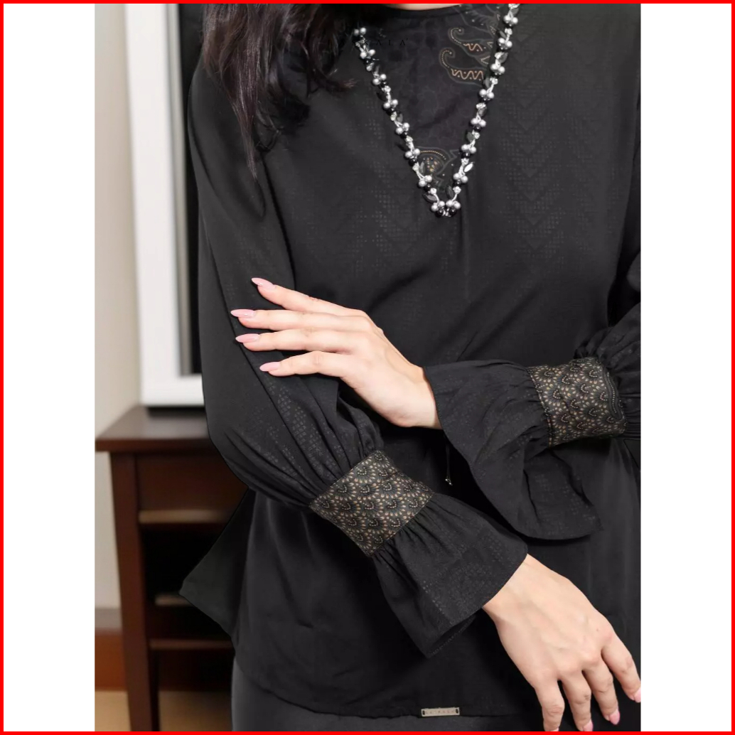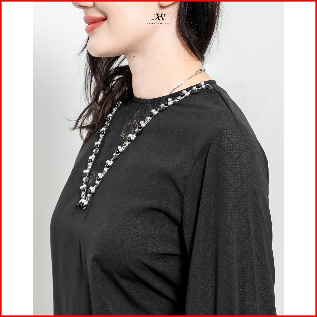 Laskala Woman - Malika Black Blouse Batik Hitam Lengan Panjang