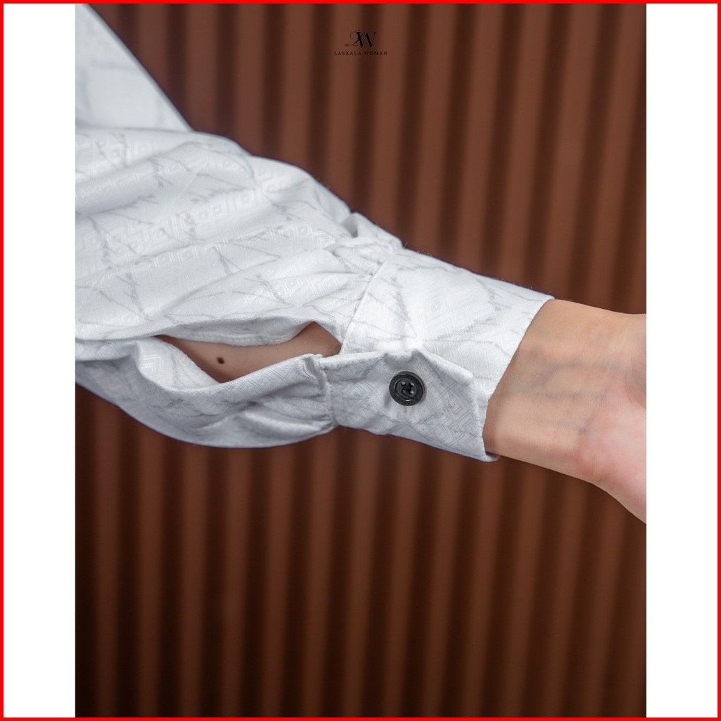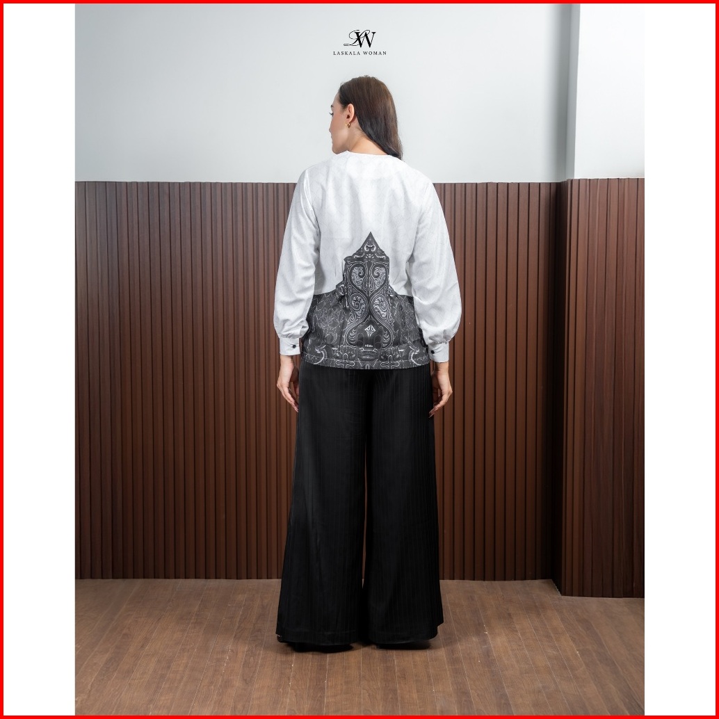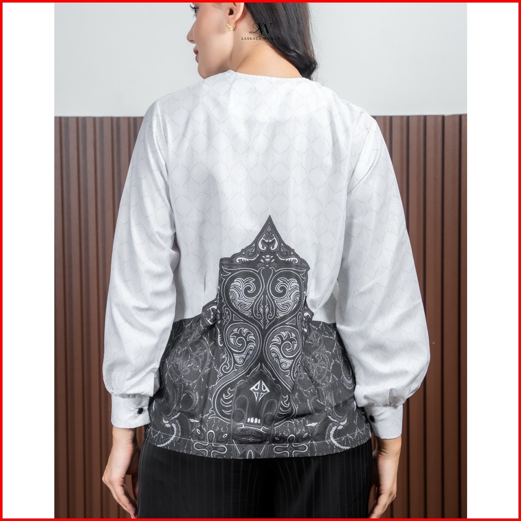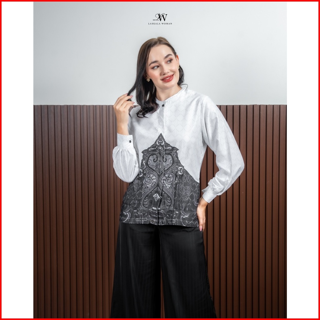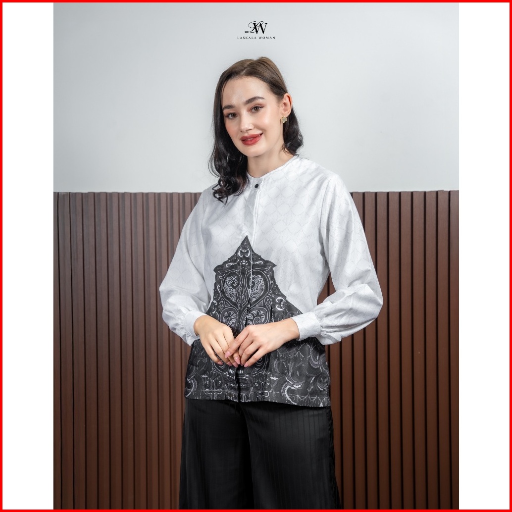 Laskala Woman - Rafa Blouse Batik Putih Lengan Panjang