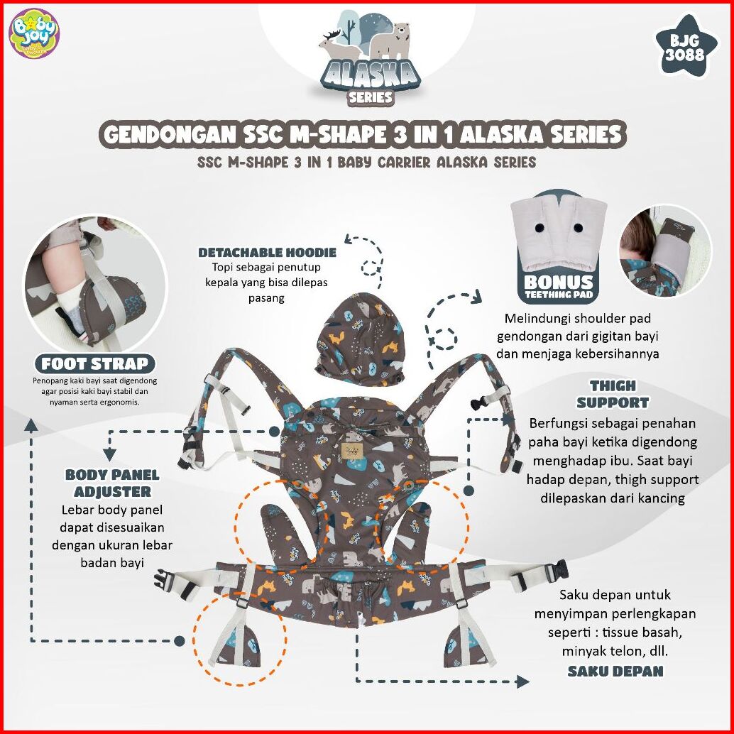 Gendongan Ssc M-shape 3 In 1 Alaska Series Baby Joy