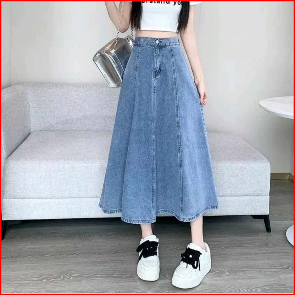 Jisso Rok Jeans Mayung Highwaist Premium Tebal Rok A-line 7 8 Model Payung Pinggang Karet