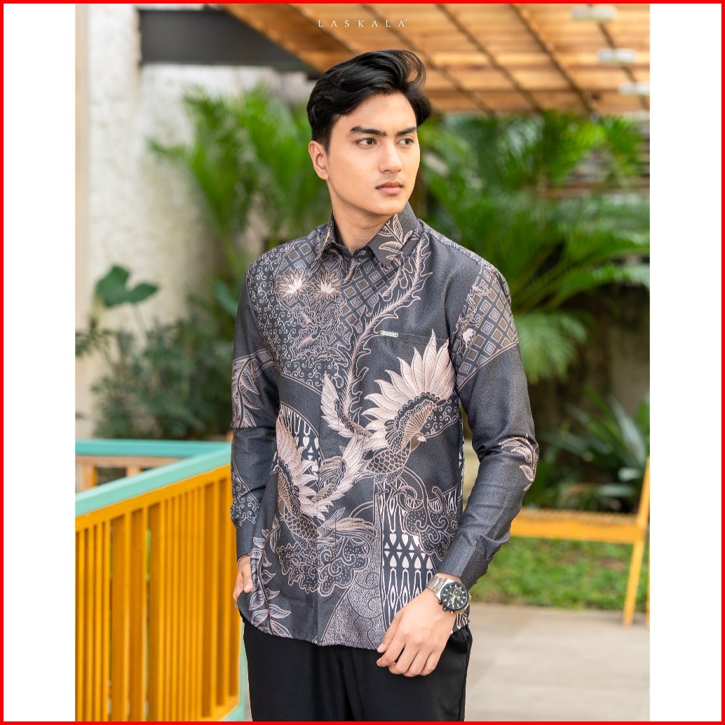 Laskala Batik Premium Punna Brown Kemeja Batik Pria Slimfit Lengan Panjang