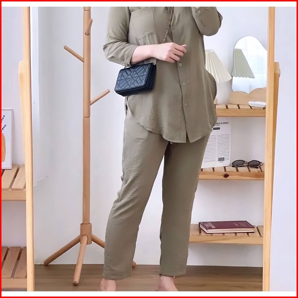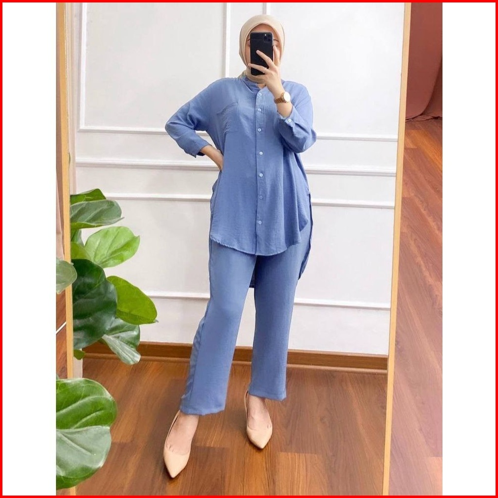 Setelan Wanita Rayon Crinkle Airflow Premium Lengan Panjang Baju Oneset Wanita Kerah Shanghai Oneset Crinkle Polos Premi