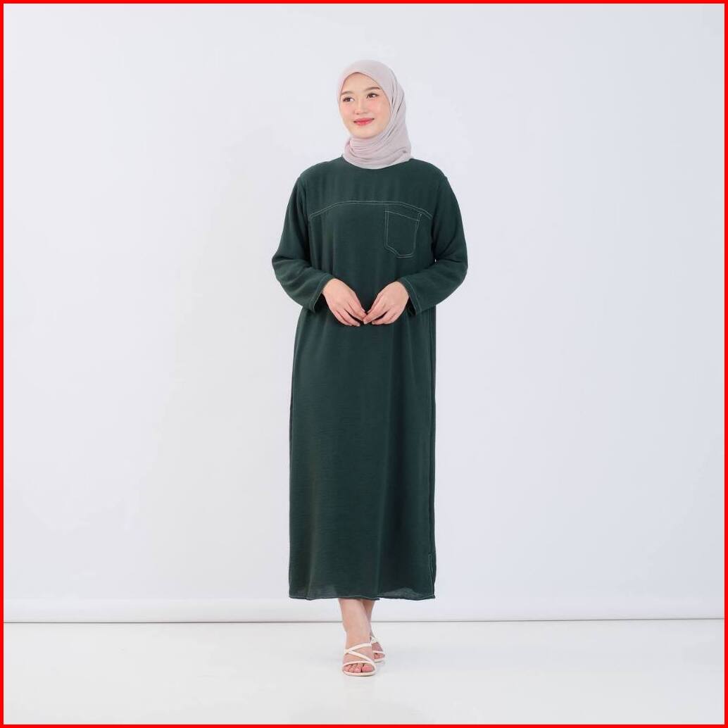 Wdn Midi Dress Crinkle Polos Fashion Muslim Wanita Gamis Dewasa Bahan Crinkle Airflow