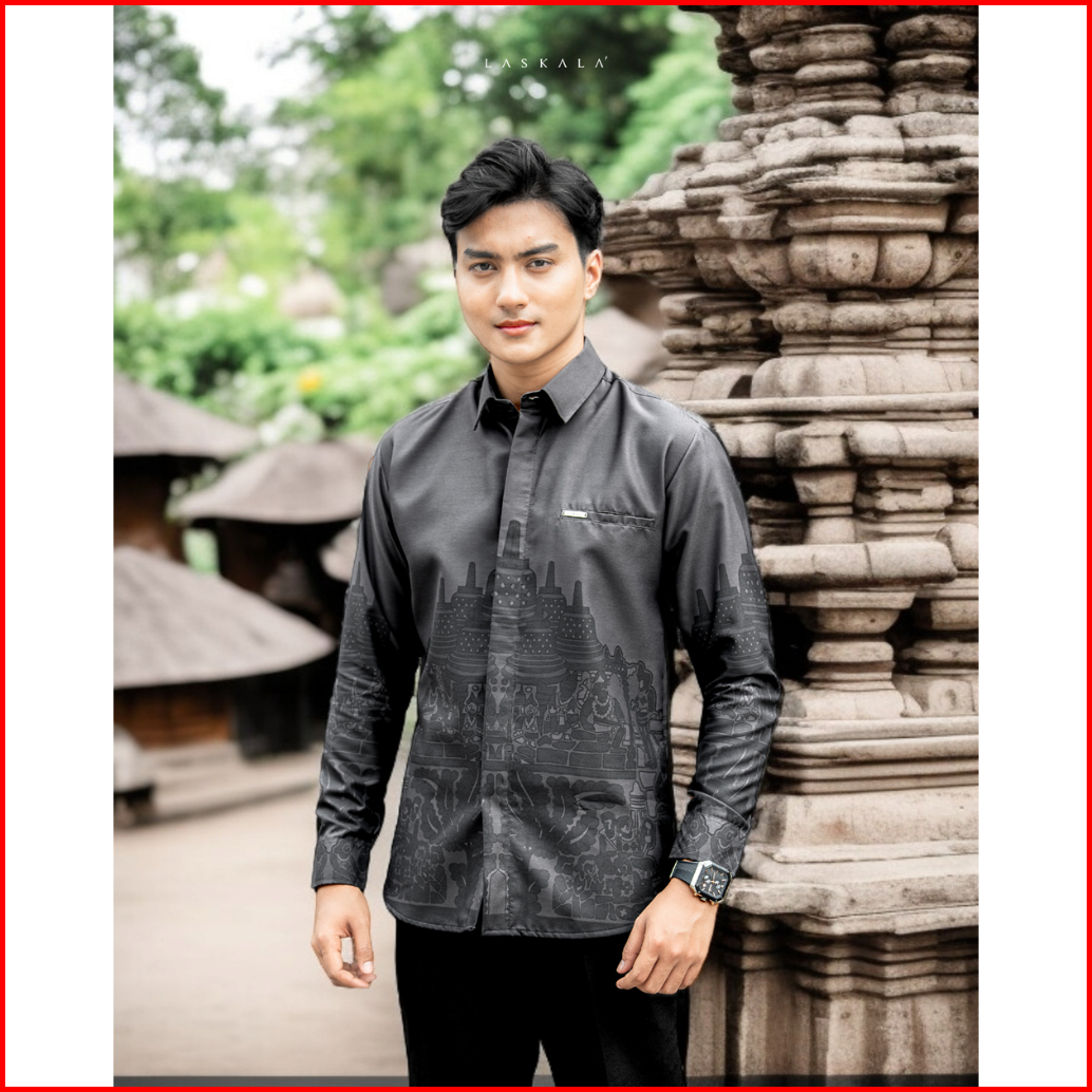 Laskala Batik Premium Borobudur Kemeja Batik Pria Slimfit Lengan Panjang