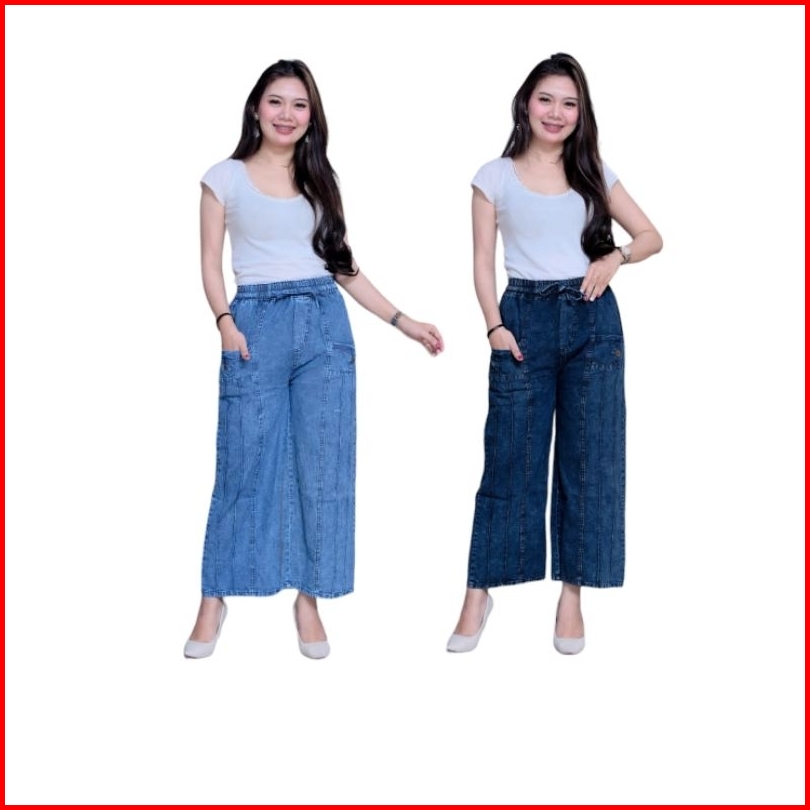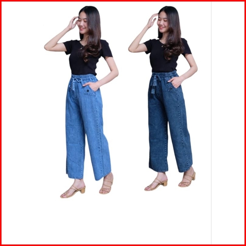 Rena Highwaist Celana Kulot Jeans Kantong Depan