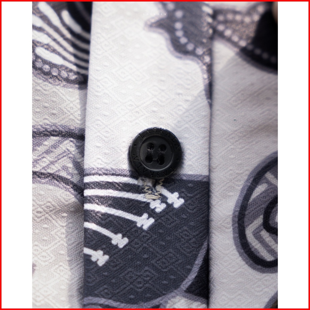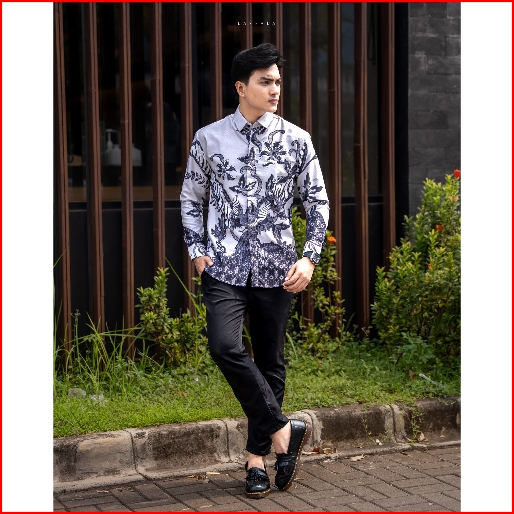 Laskala Batik Premium Tondano Grey Kemeja Batik Pria Slimfit Lengan Panjang