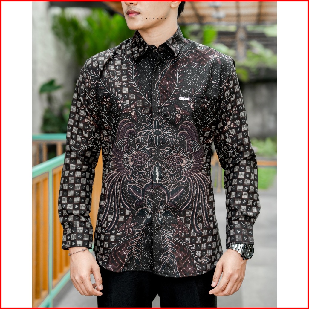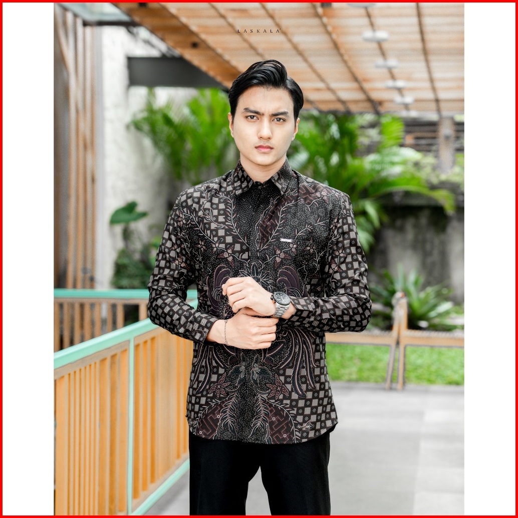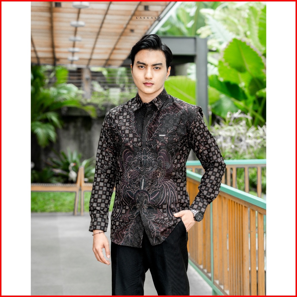 Laskala Batik Premium Astana Purple Kemeja Batik Pria Slimfit Lengan Panjang
