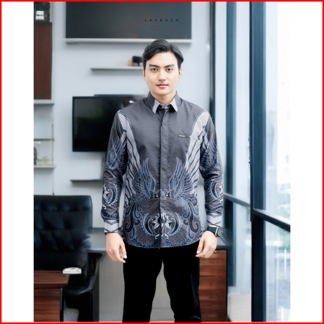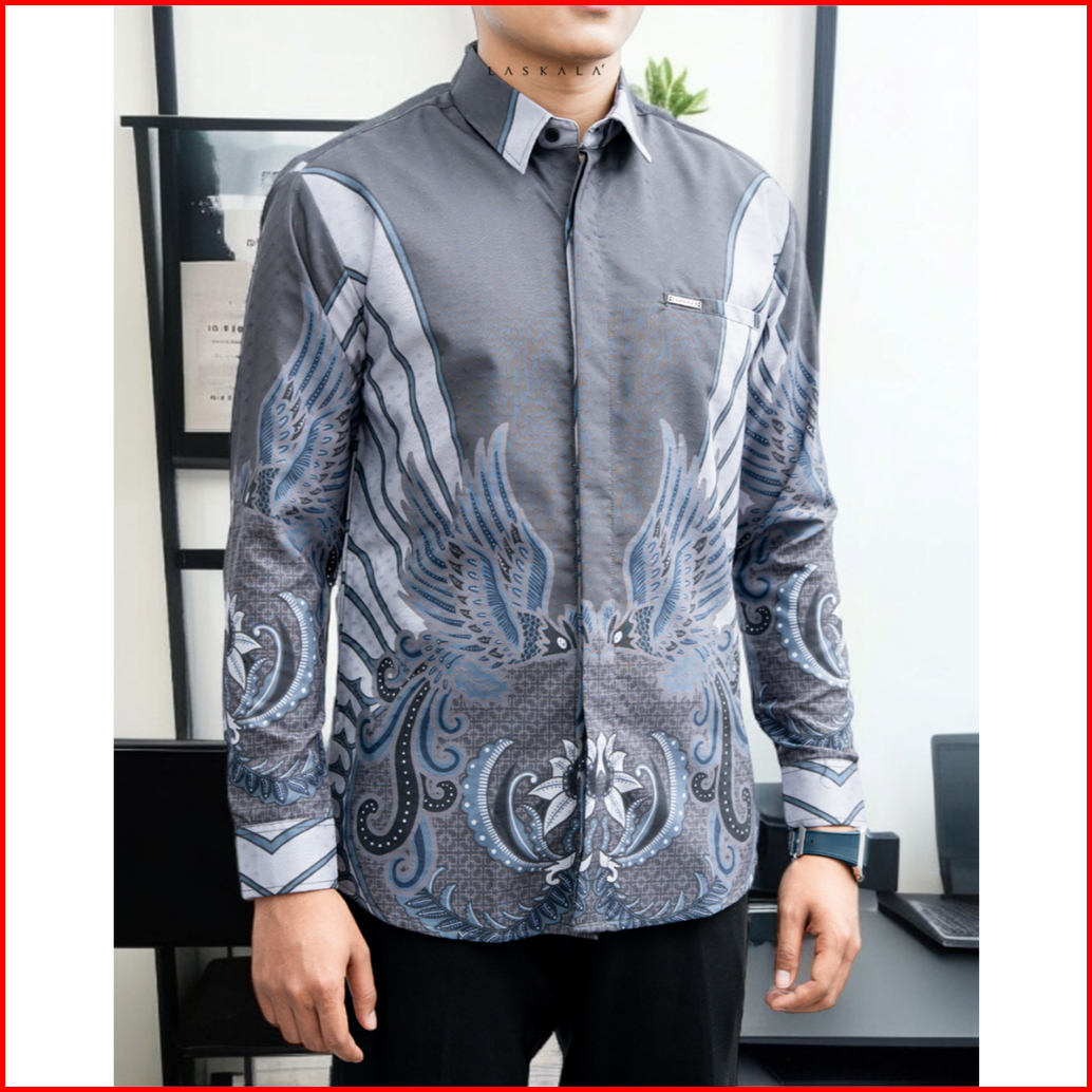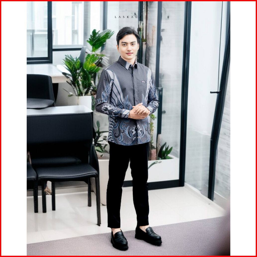 Laskala Batik Premium Mamuju Grey Kemeja Batik Pria Slimfit Lengan Panjang