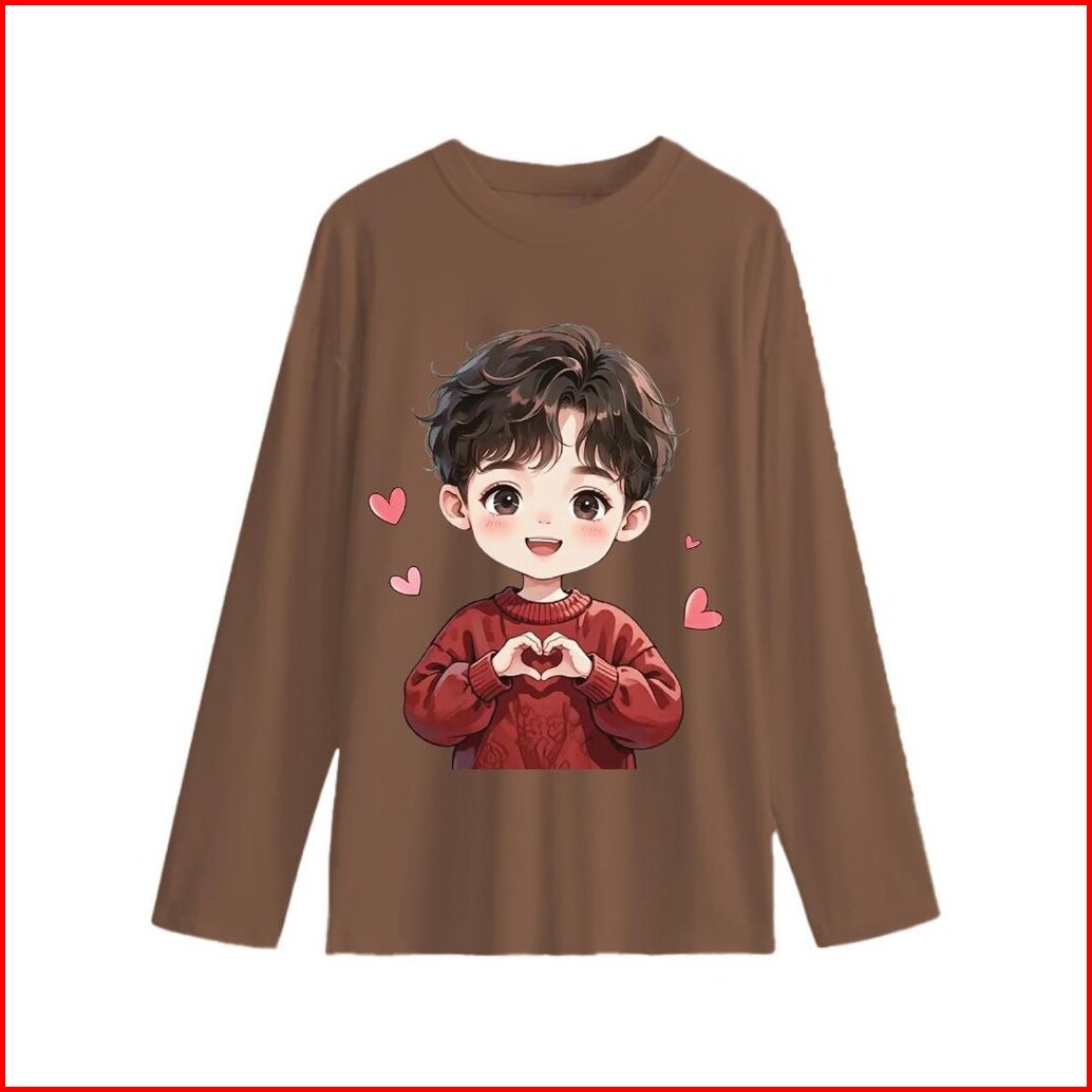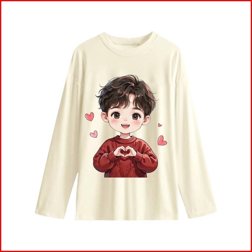 Jessica Tshirt Lengan Panjang Baju Kaos Oversize Tshirt Motif Cute Boy Couple Korean Style Baju Bahan 100 Cotton
