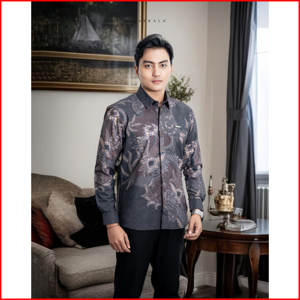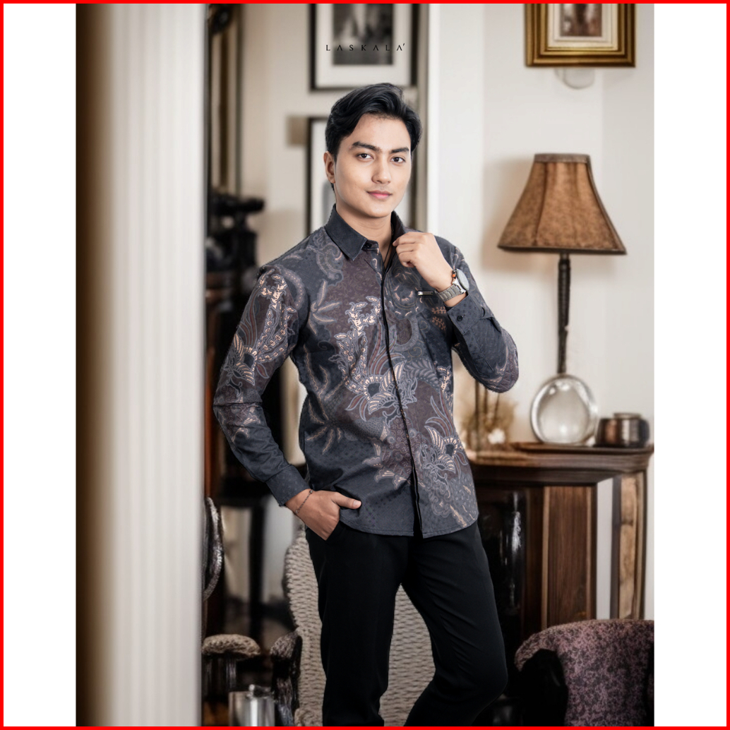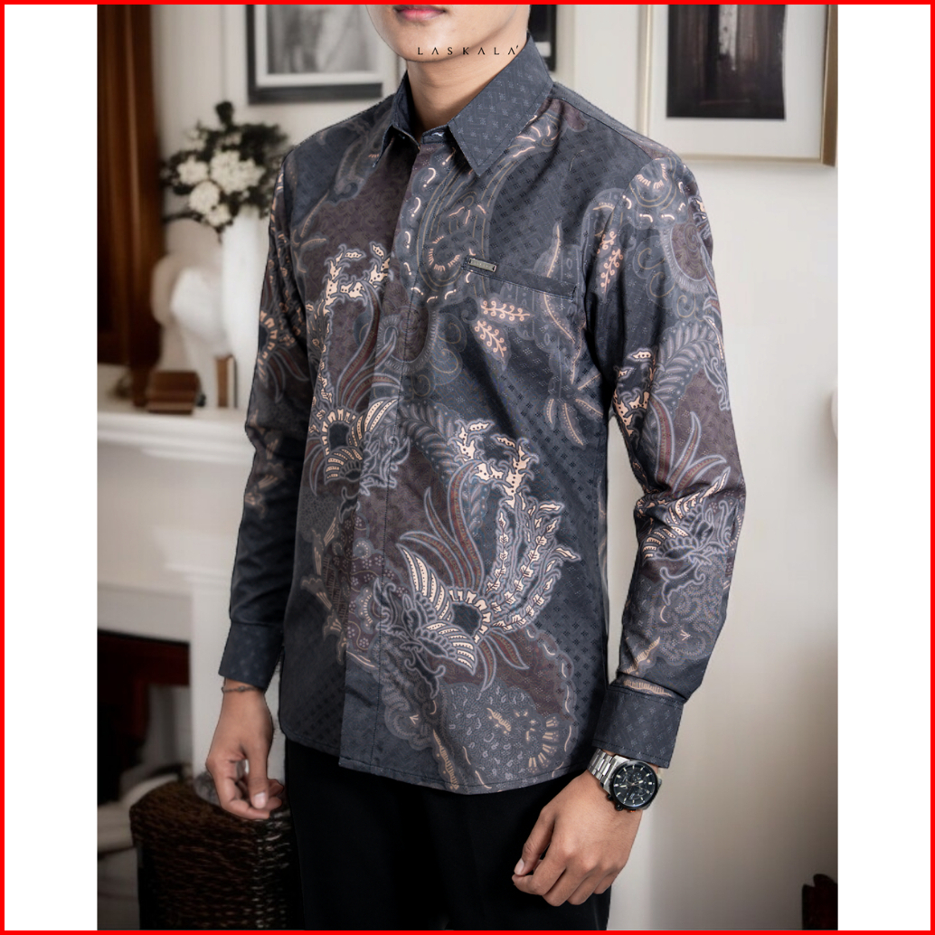Laskala Batik Premium Maros Grey Kemeja Batik Pria Slimfit Lengan Panjang