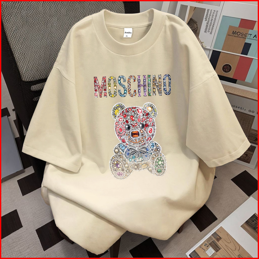 Jessica Tshirt Oversize Wanita Lengan Pendek Kaos Cetakan Beruang Berwarna-warni Retro Style Bahan 100 Cotton