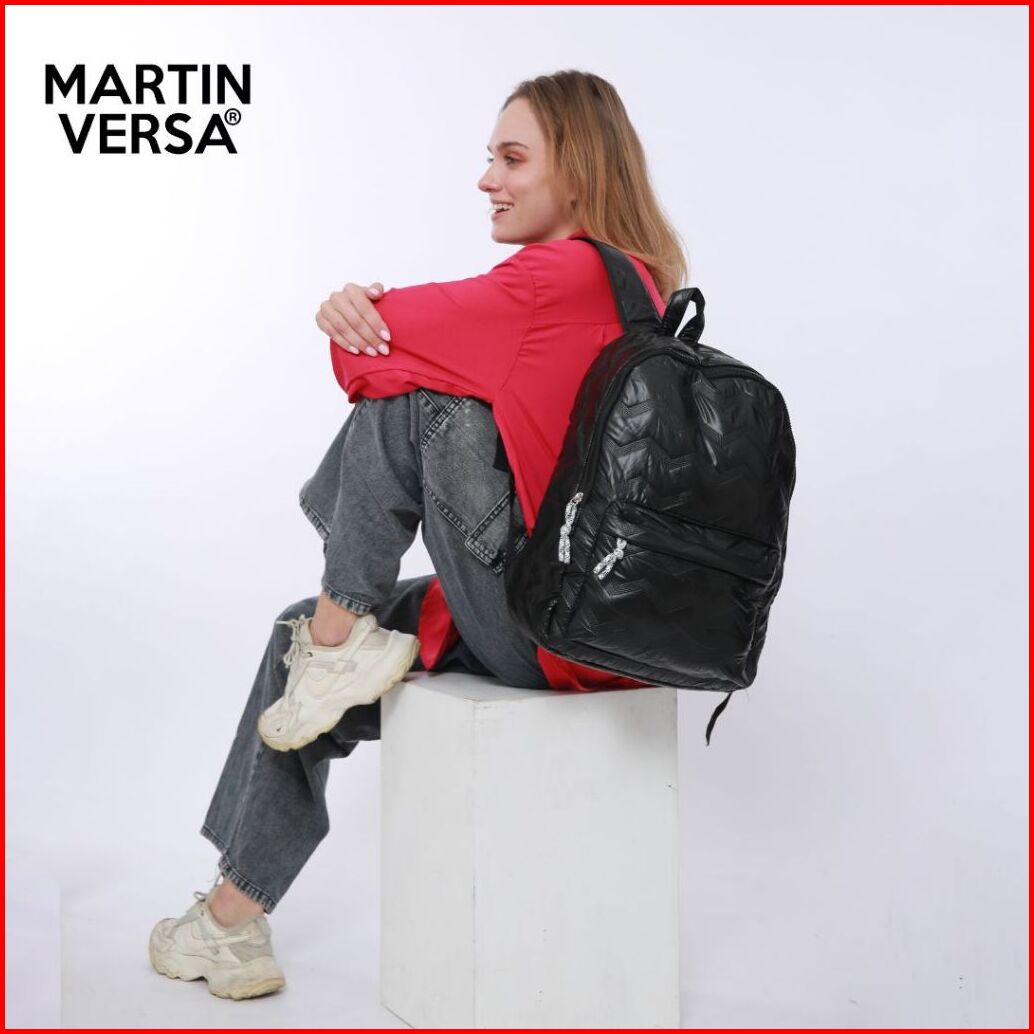 Martin Versa Tas Ransel Sekolah Model Gelombang Backpack Laptop Parasut Pria Wanita-hitam