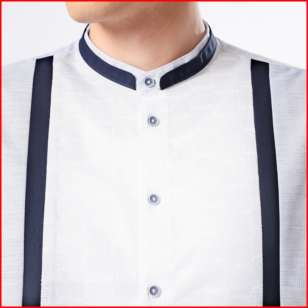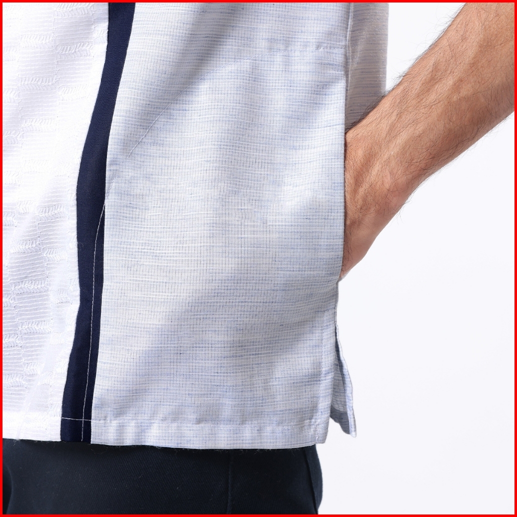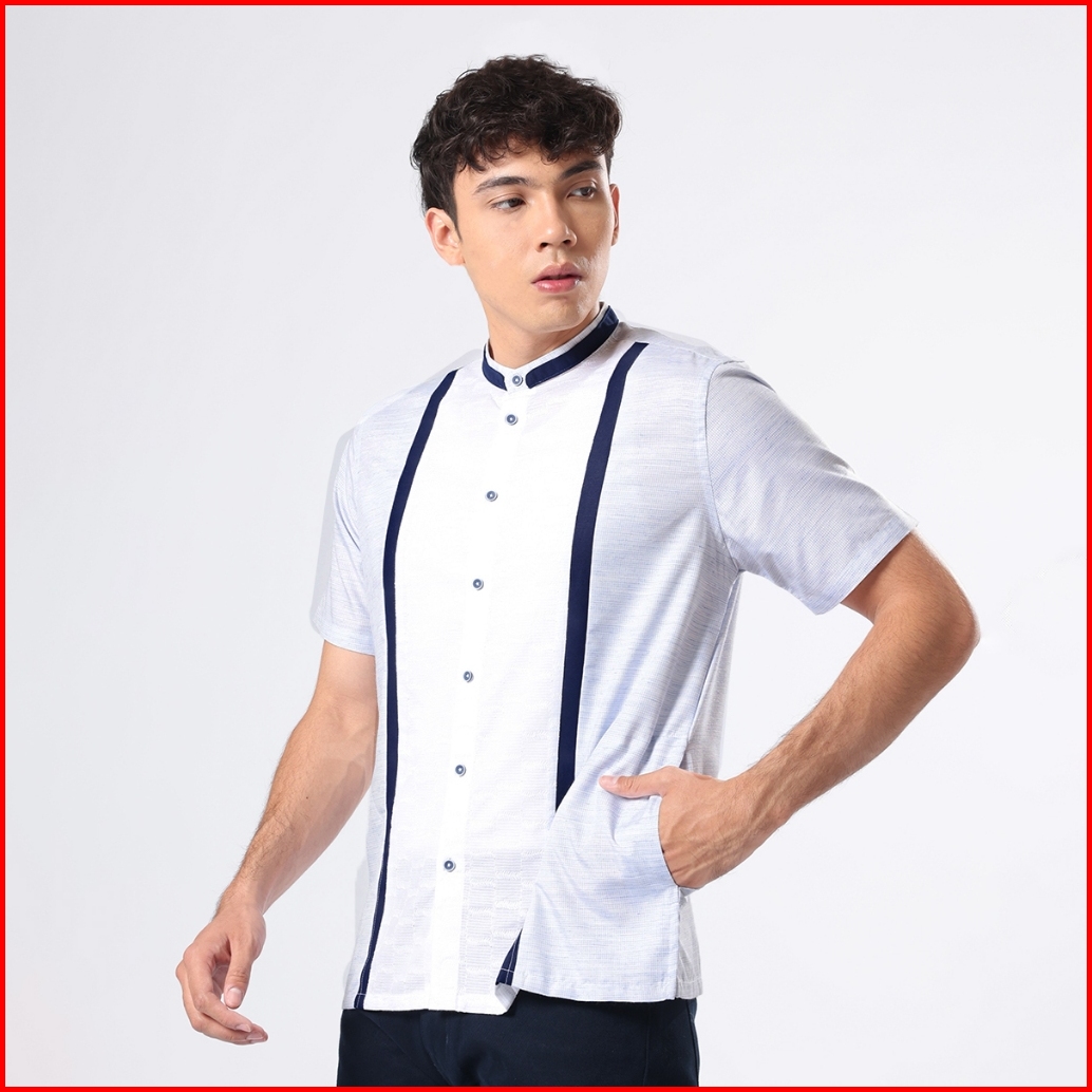 Edwin Jeans - Kemeja Koko Pria Lengan Pendek Aragon White Navy Baju Muslim Pria