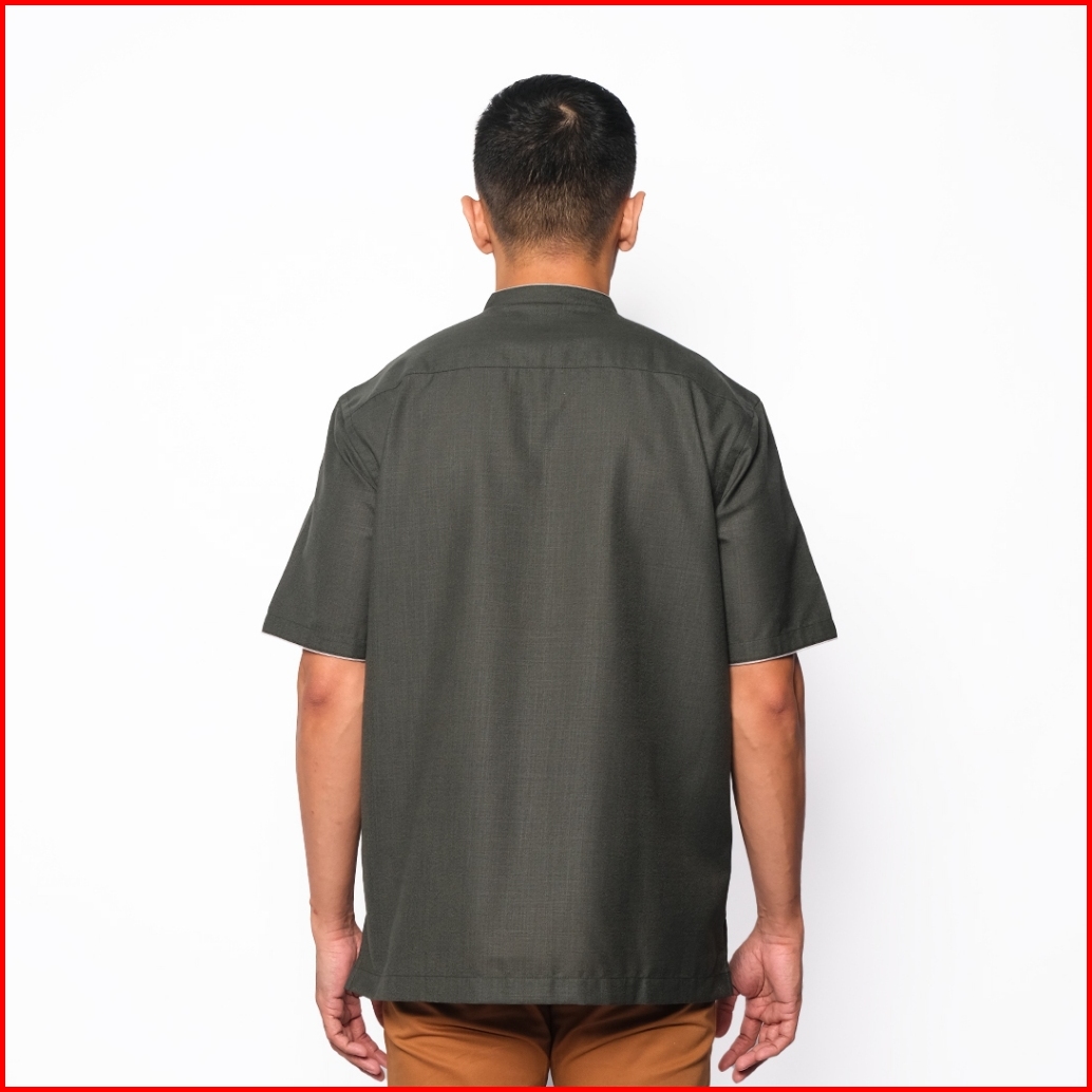 Edwin Jeans - Kemeja Koko Pria Lengan Pendek Kahfi Army Green Baju Muslim Pria
