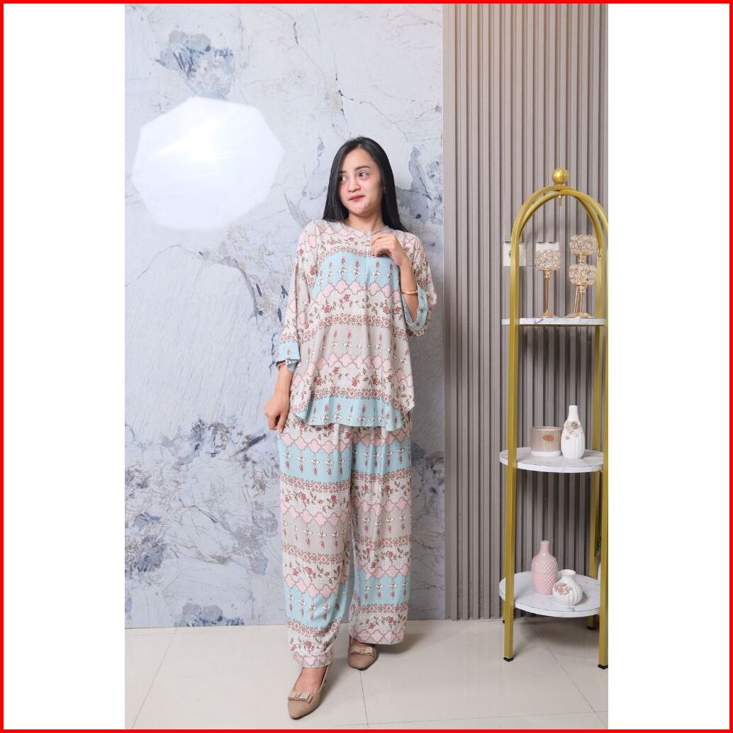 Zoraya Lalysa Set Viral Setelan Jumbo Wanita Celana Panjang Pajamas Remaja Tangan Pendek Oneset Rayon Premium Wanita Ter