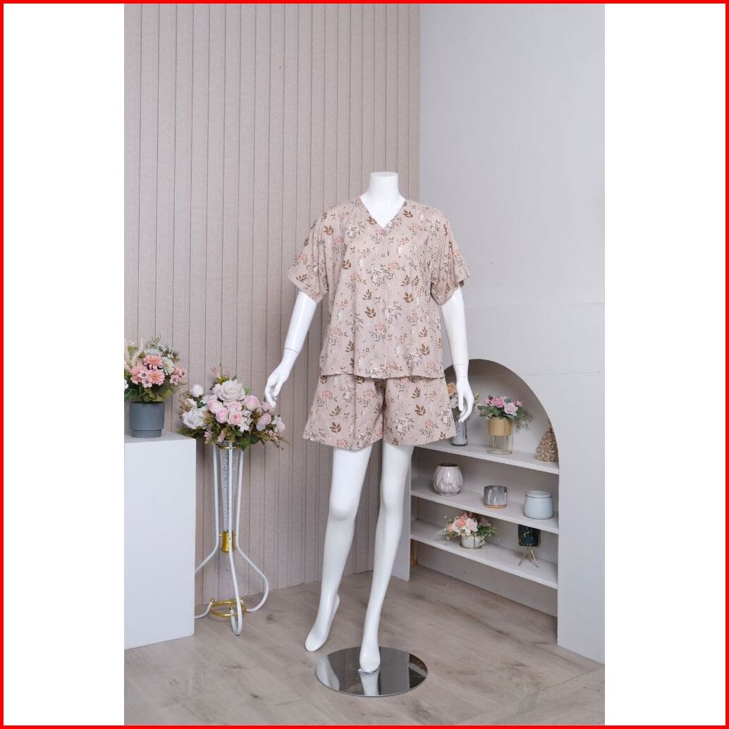 Zoraya Disa Set Jumbo Setelan Wanita Piyama Celana Pendek Oneset Tangan Pendek Pajamas Terbaru Hotpants Kekinian Baju Ka
