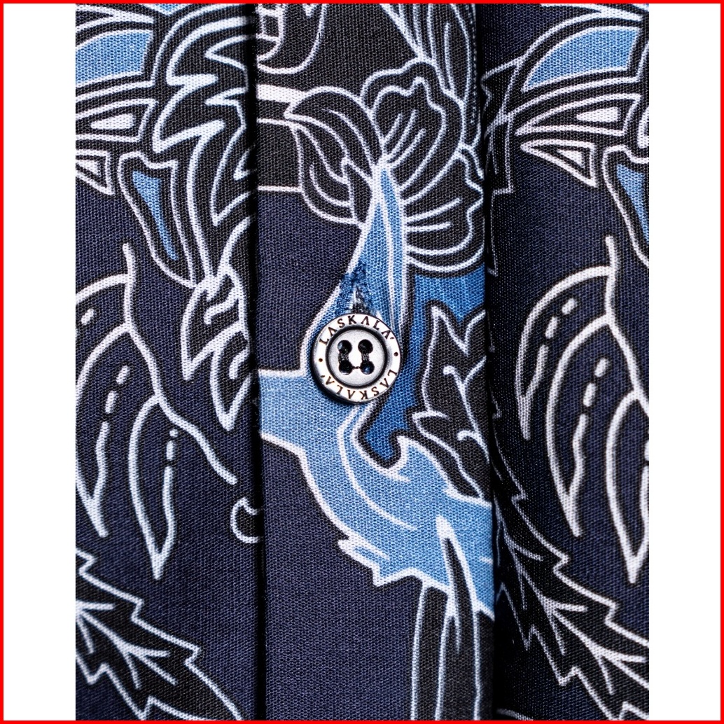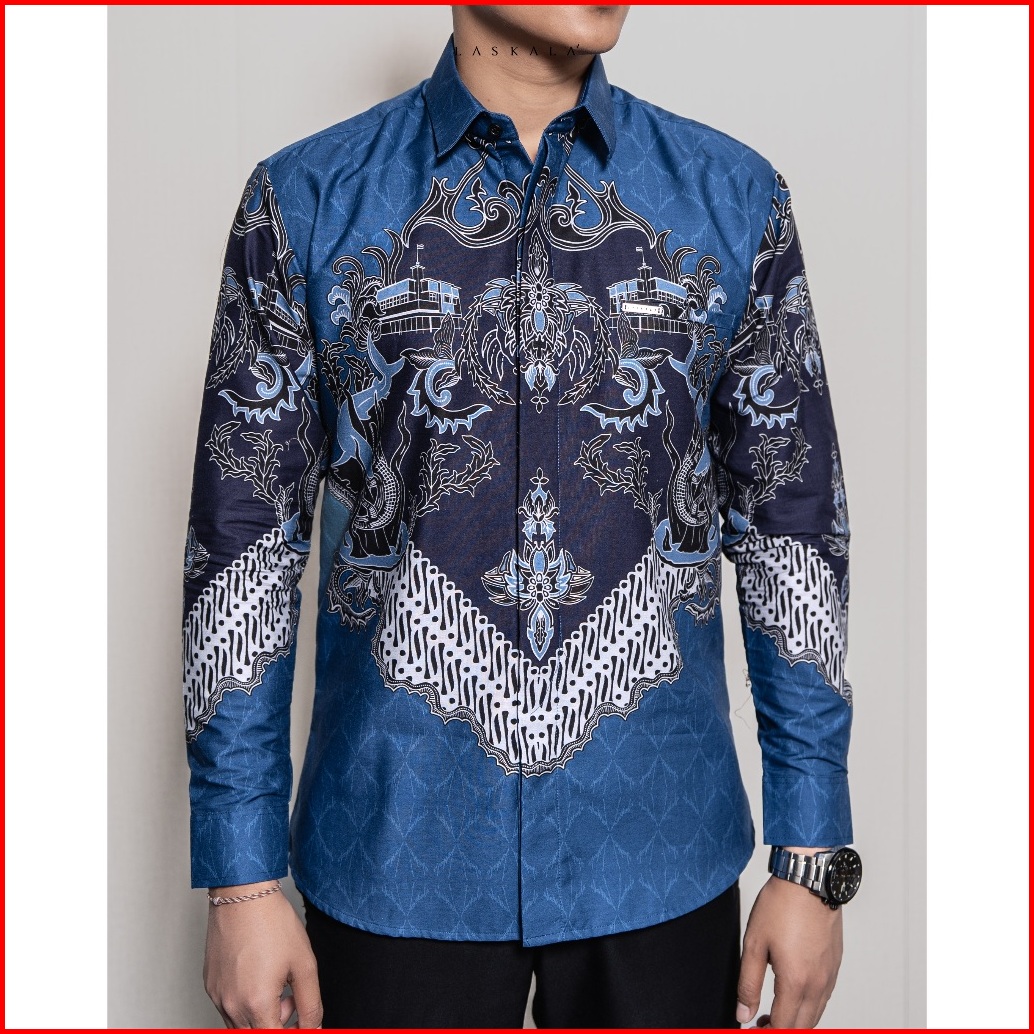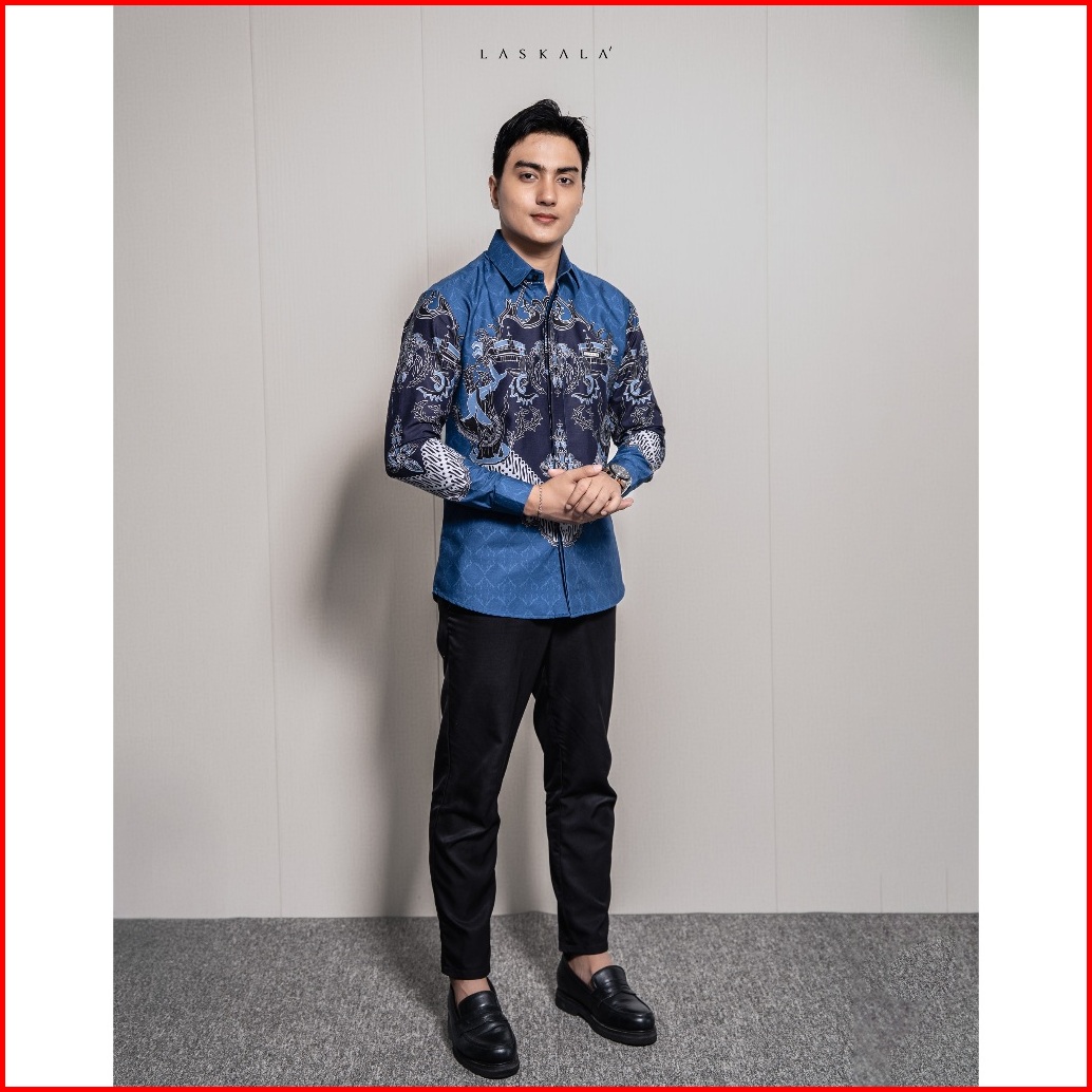Laskala Batik Premium Surabaya Biru Kemeja Batik Pria Slimfit Lengan Panjang