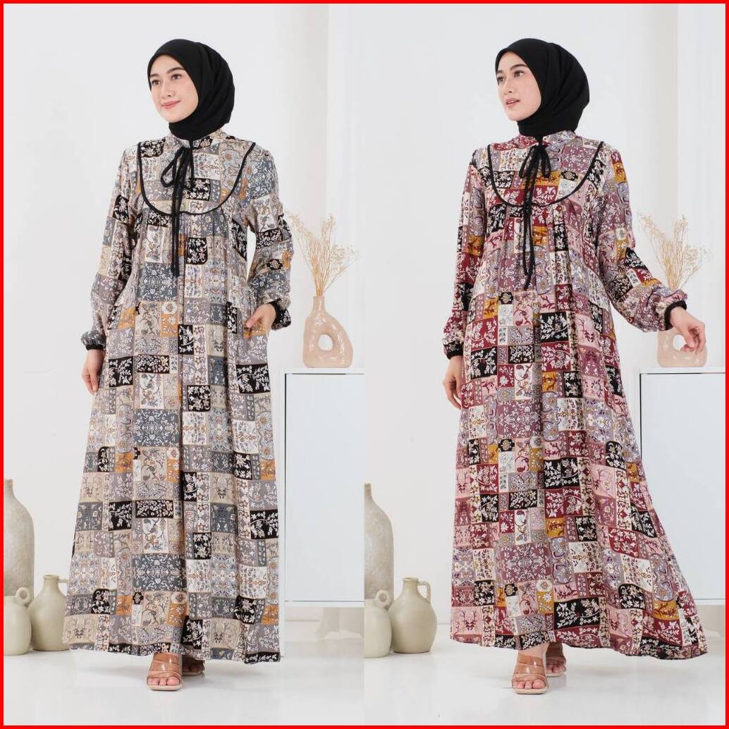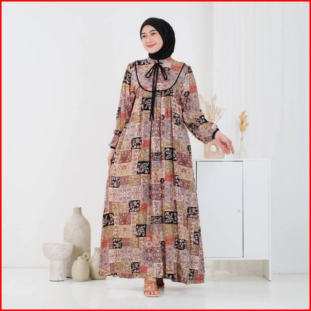 Luna Dress Gamis Motif Wanita Rayon Diamond Premium Muslim Aksen List Busui Friendly Exclusive By Wdn