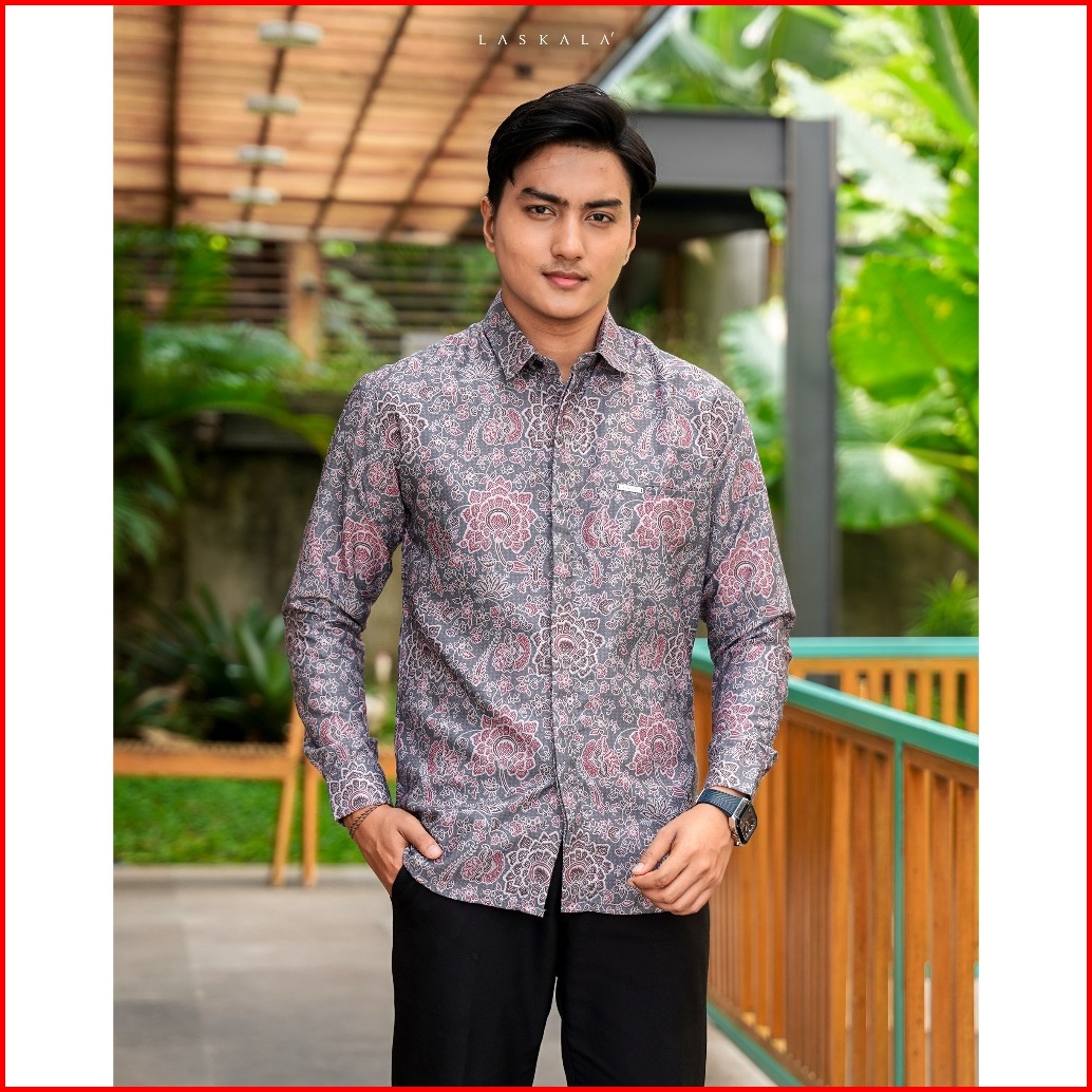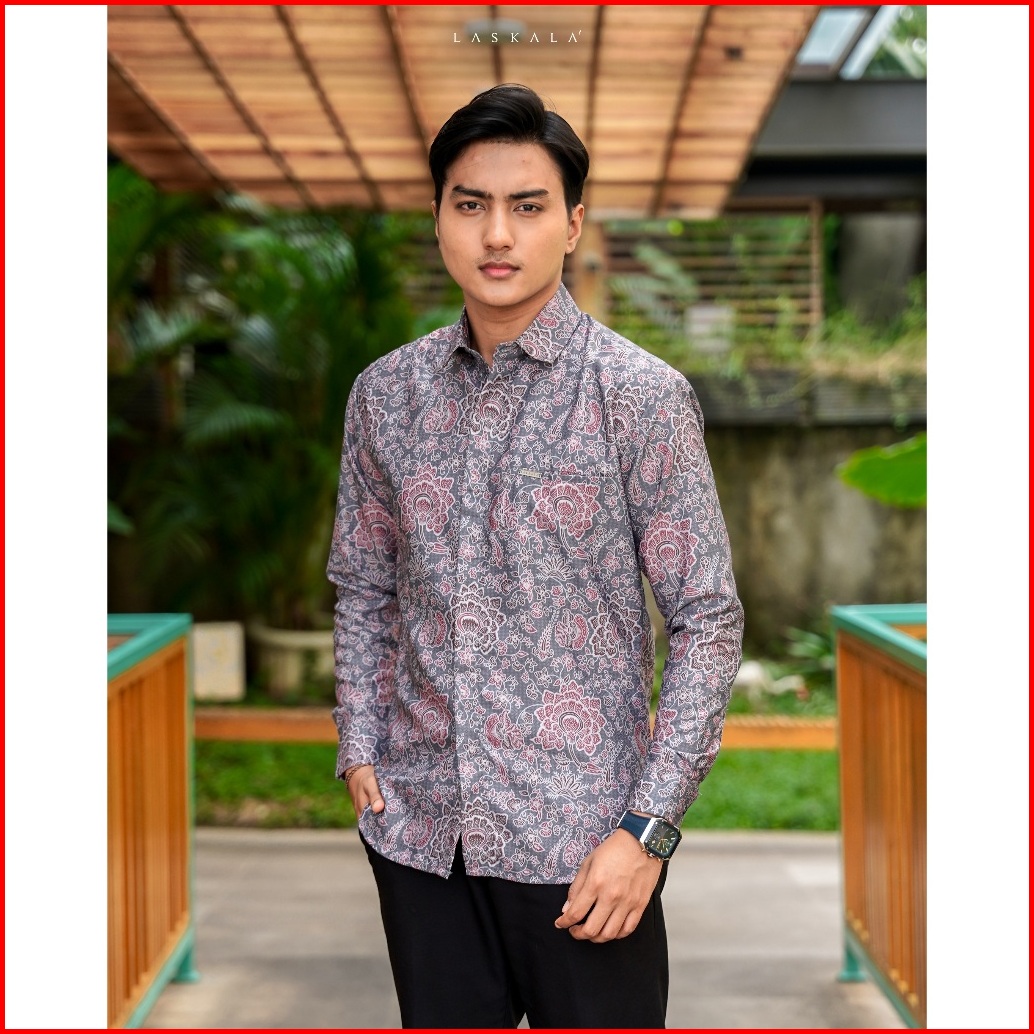 Laskala Batik Premium Tomohon Tosca Kemeja Batik Pria Slimfit Lengan Panjang