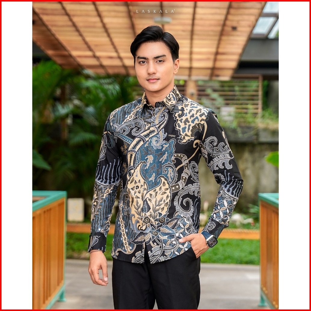 Laskala Batik Premium Adiwangsa Black Kemeja Batik Pria Slimfit Lengan Panjang