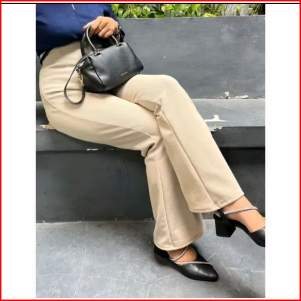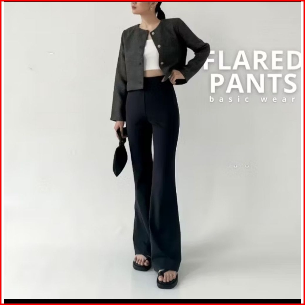 Cutbray Flare Pants Knit Line Flare Bahan Melar Elastis Celana Panjang Wanita