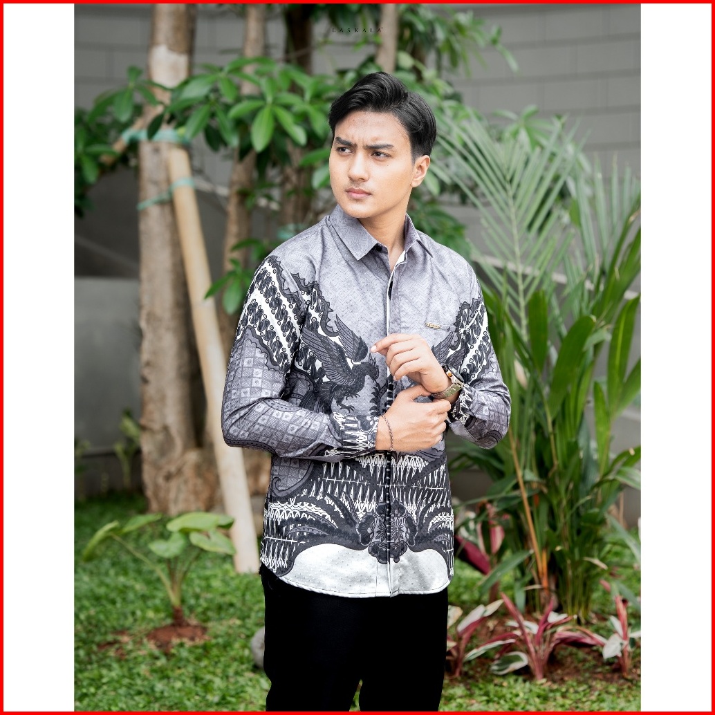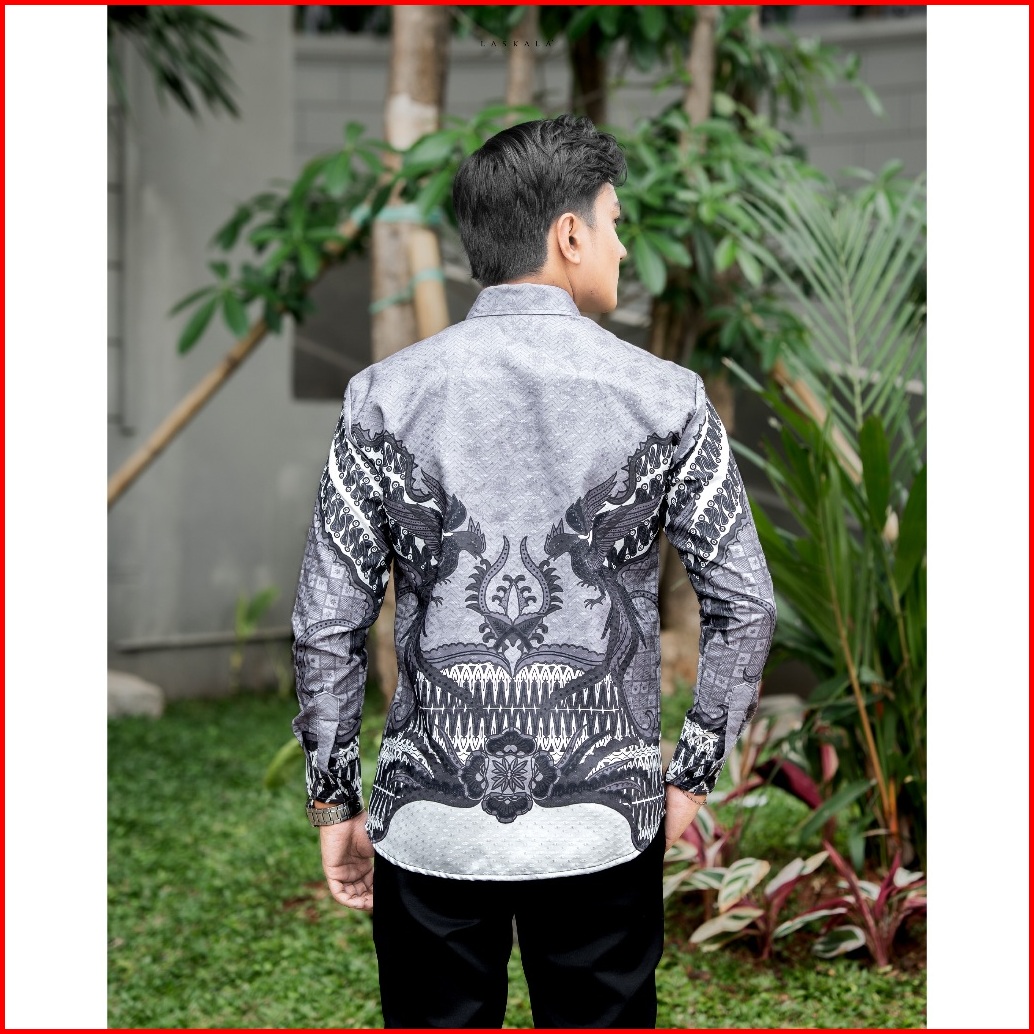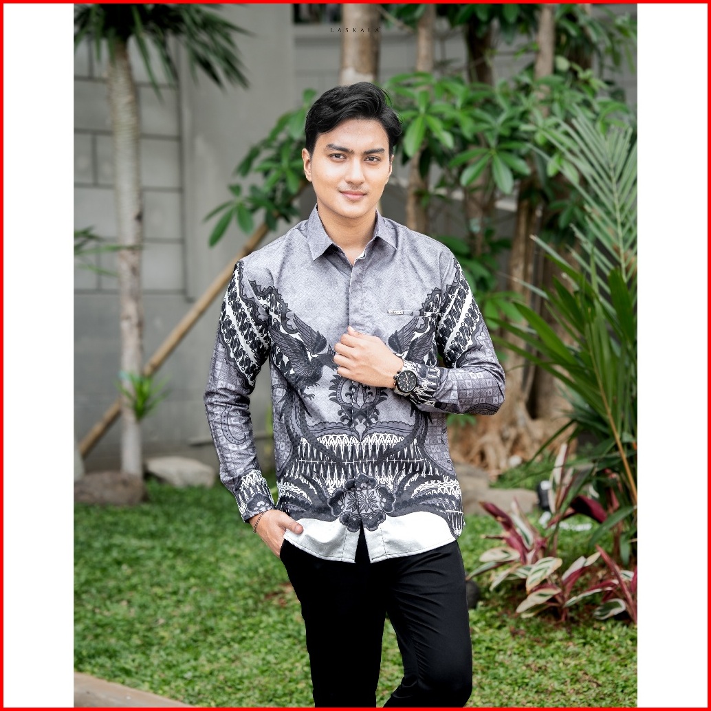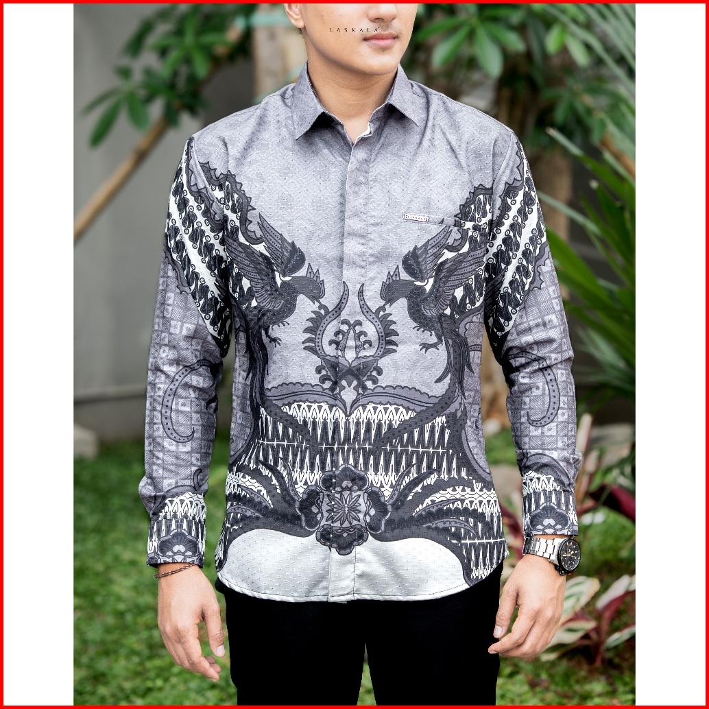 Laskala Batik Premium Timbono Grey Kemeja Batik Pria Slimfit Lengan Panjang