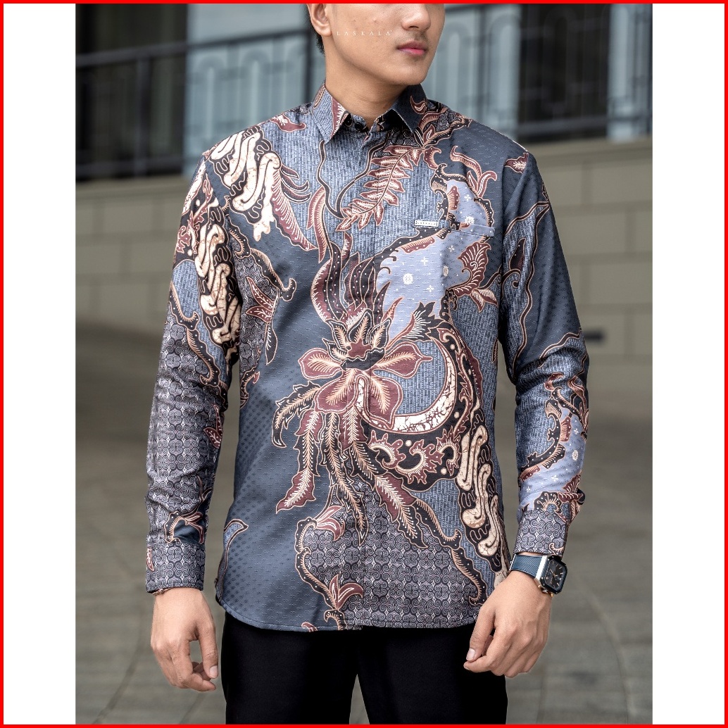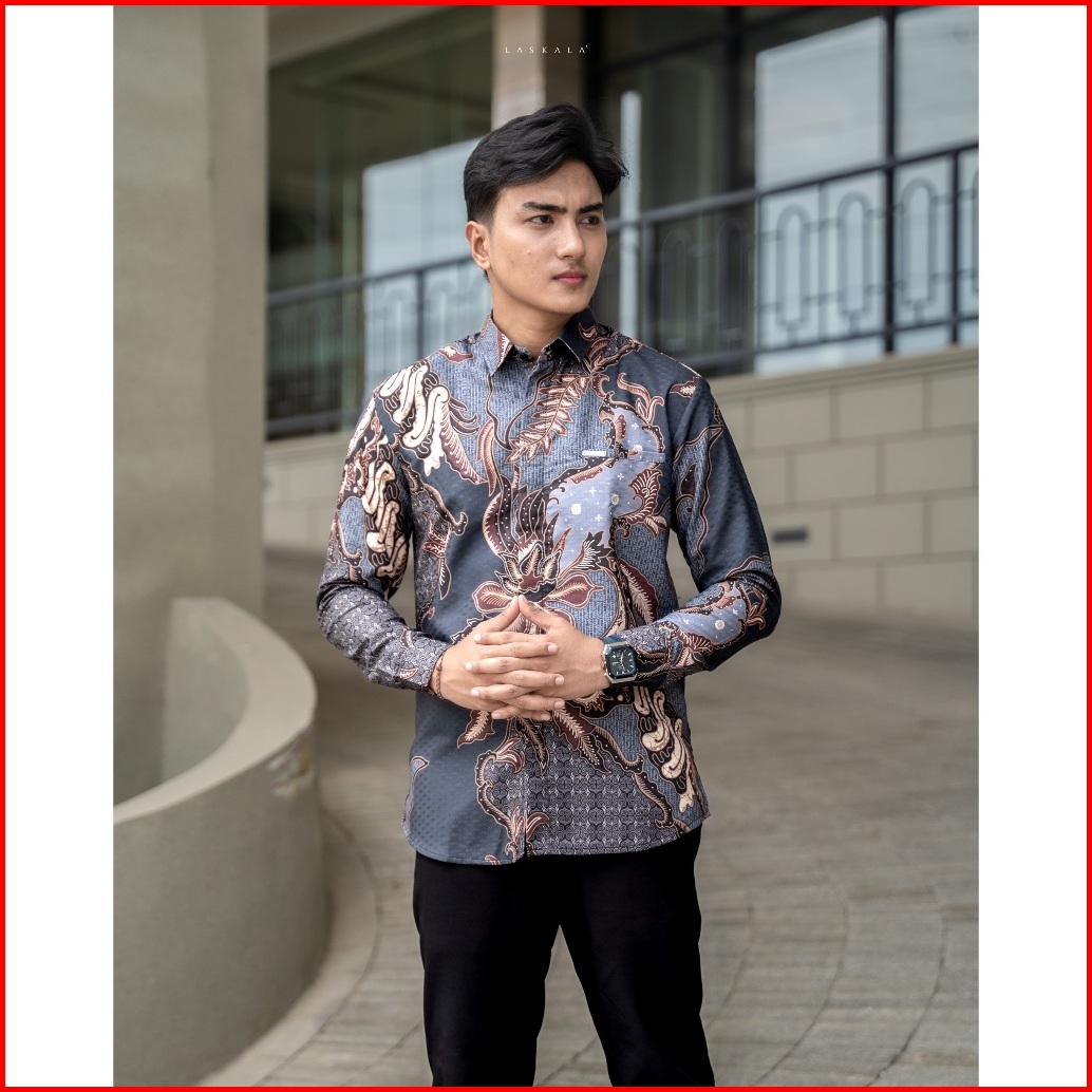 Laskala Batik Premium Rannaloe Kemeja Batik Pria Slimfit Lengan Panjang