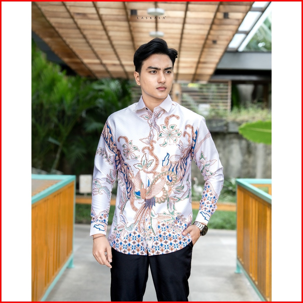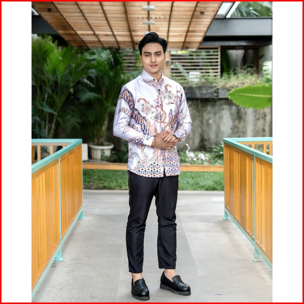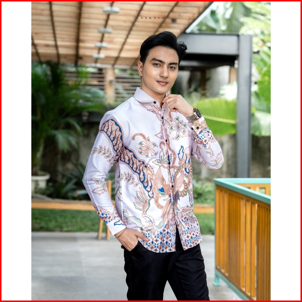 Laskala Batik Premium Tondano Cream Kemeja Batik Pria Slimfit Lengan Panjang