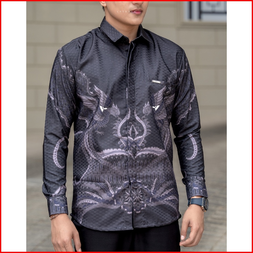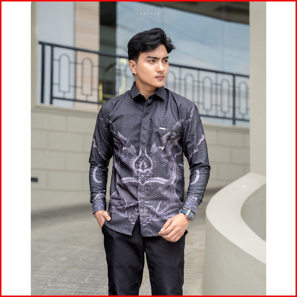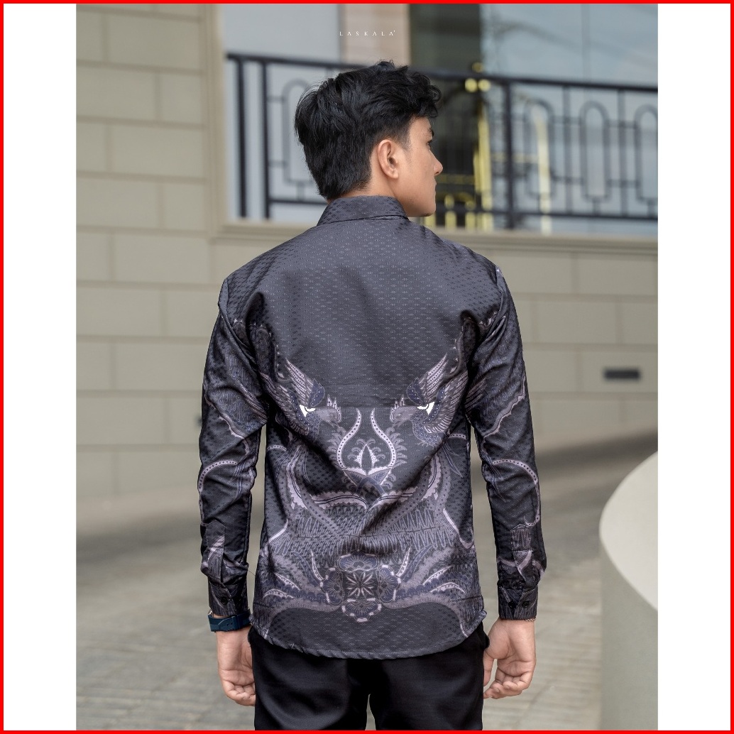 Laskala Batik Premium Timbono Black Kemeja Batik Pria Slimfit Lengan Panjang