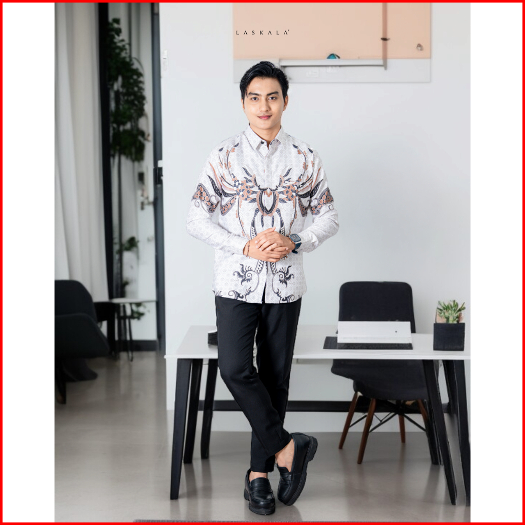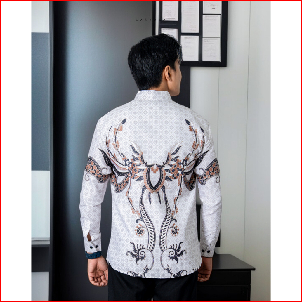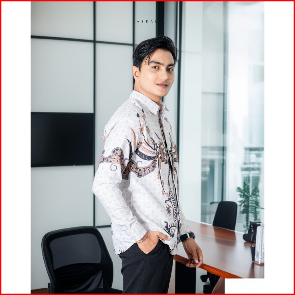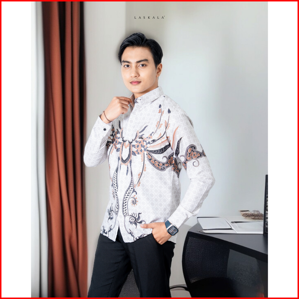 Laskala Batik Premium Bone Cream Kemeja Batik Pria Slimfit Lengan Panjang