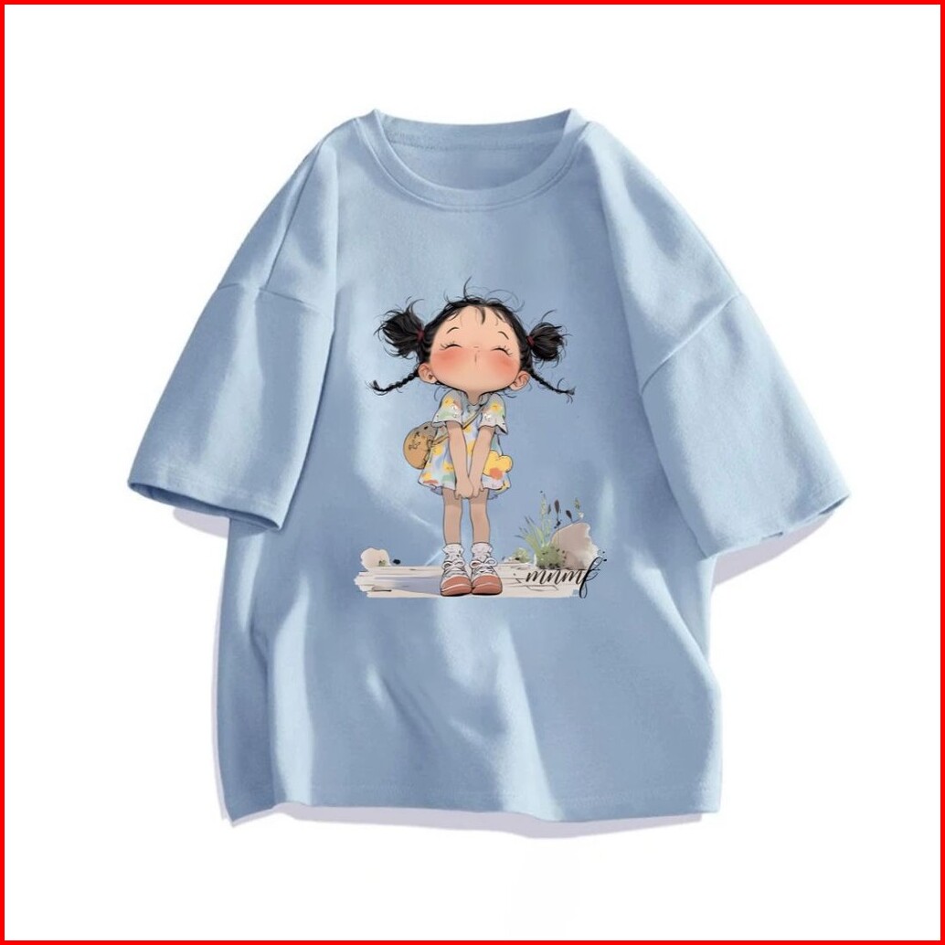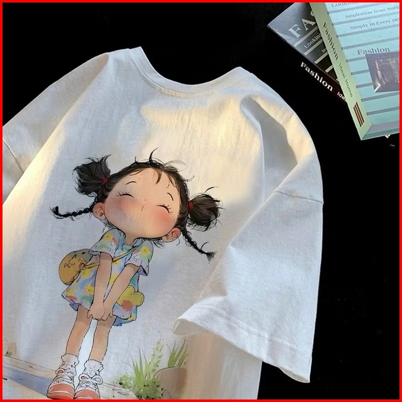 Kaos Wanita Oversize Retro Little Girl Cartoon Childhood Korean Style Bahan 100 Cotton Premium