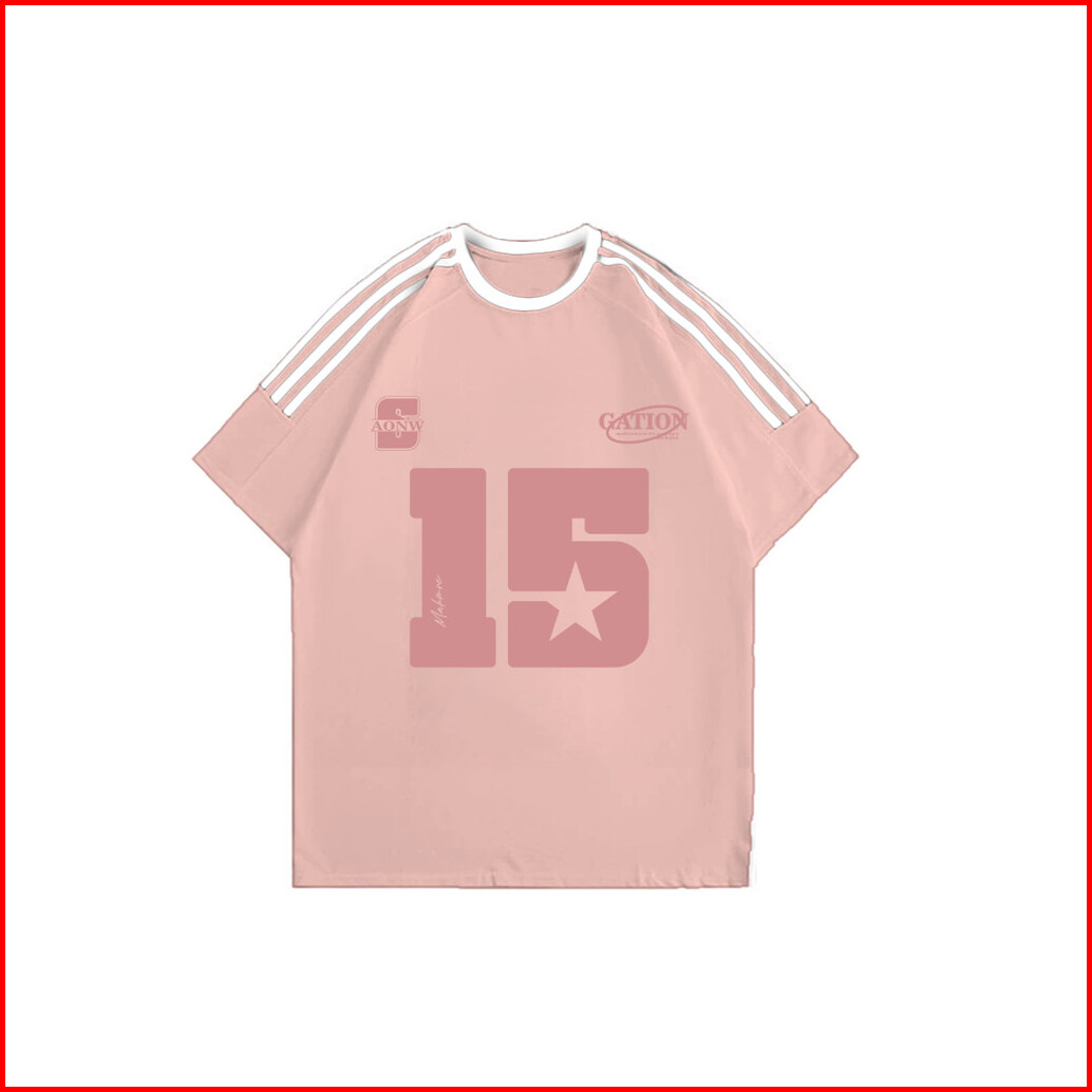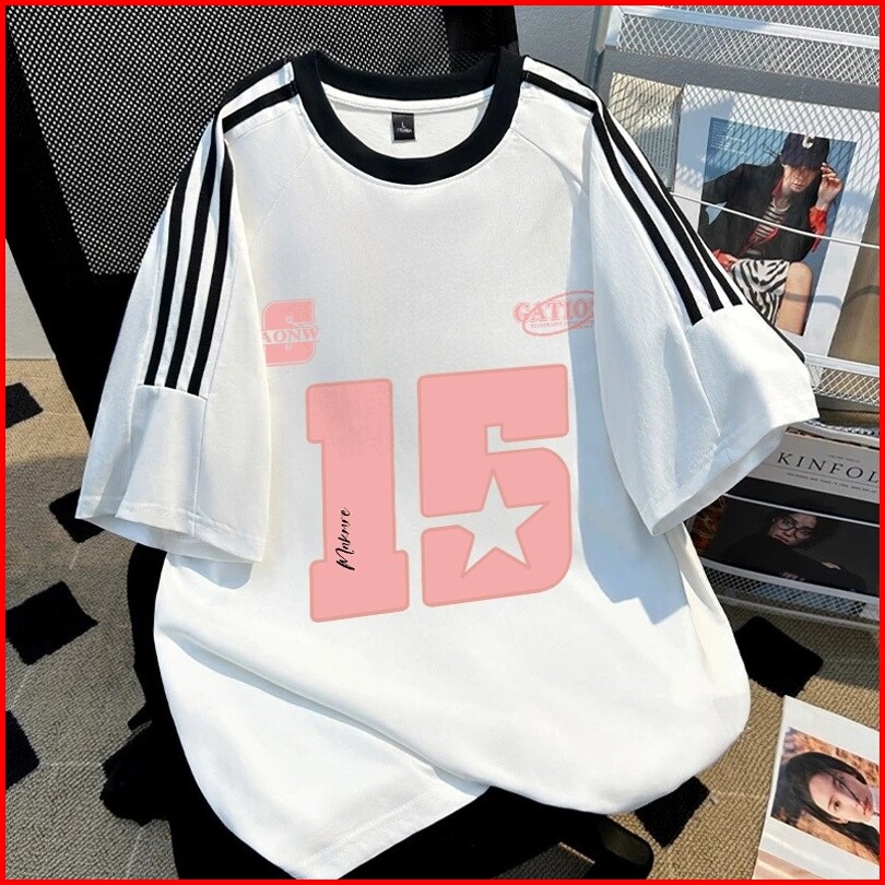 Jessica Baju Wanita Putih Black Kaos Premium Lengan Pendek Oversize Kaos Merah Muda Dengan Tiga Garis Dan Nomor 15 Atasa