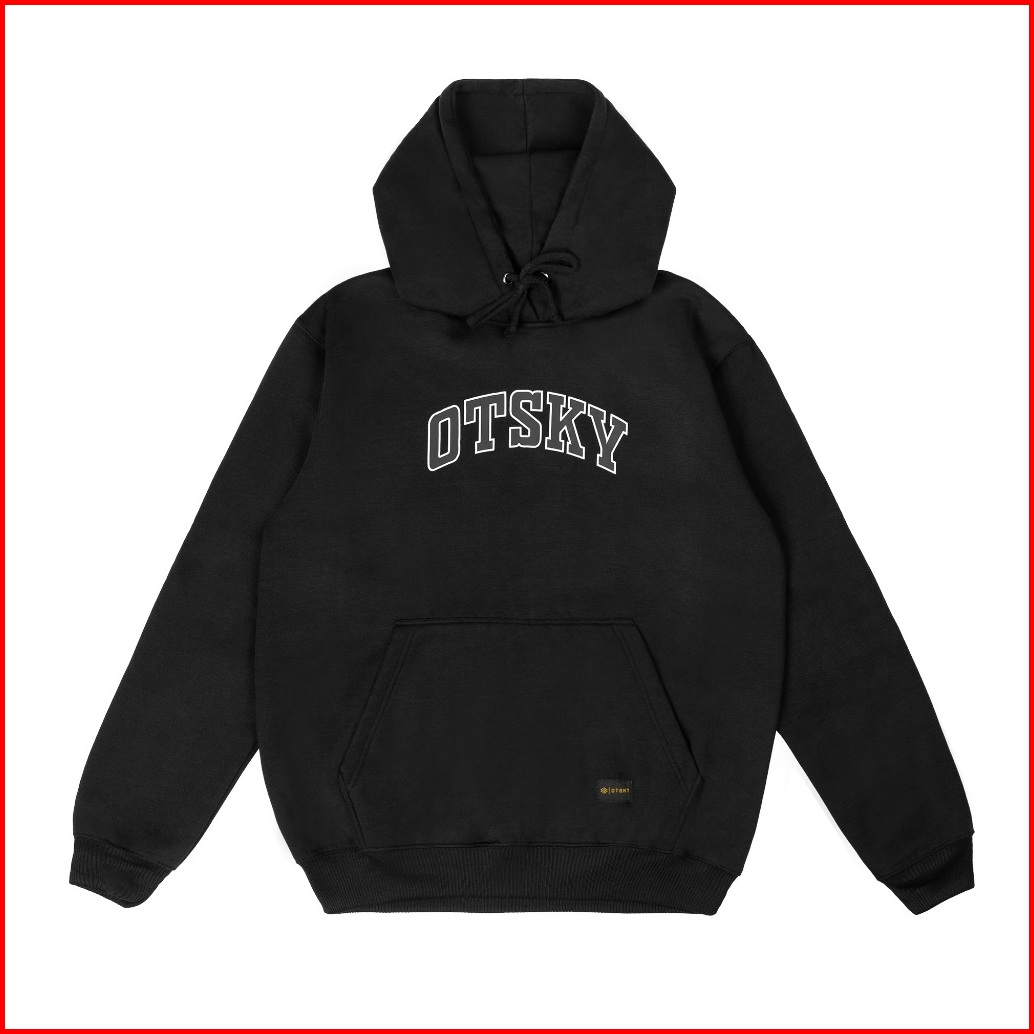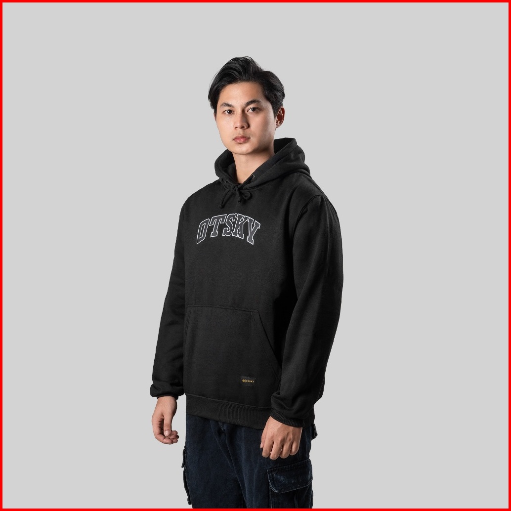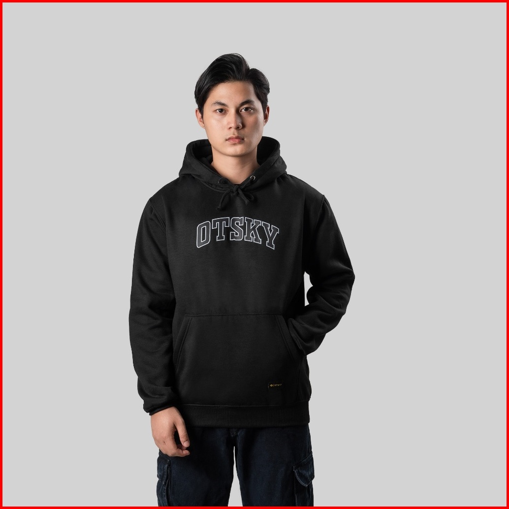 Otsky Jacket Hoodie Pria Font Basic Fleece Black Premium