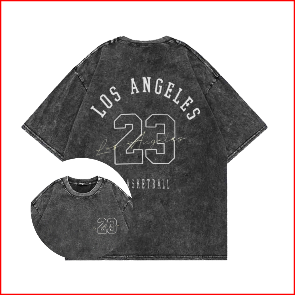 Jessica Tshirt Lengan Pendek Kaos Oversize Kartun Korea Warna Hitam Washed Motif Cetakan Basketball Number 23 Bahan Katu