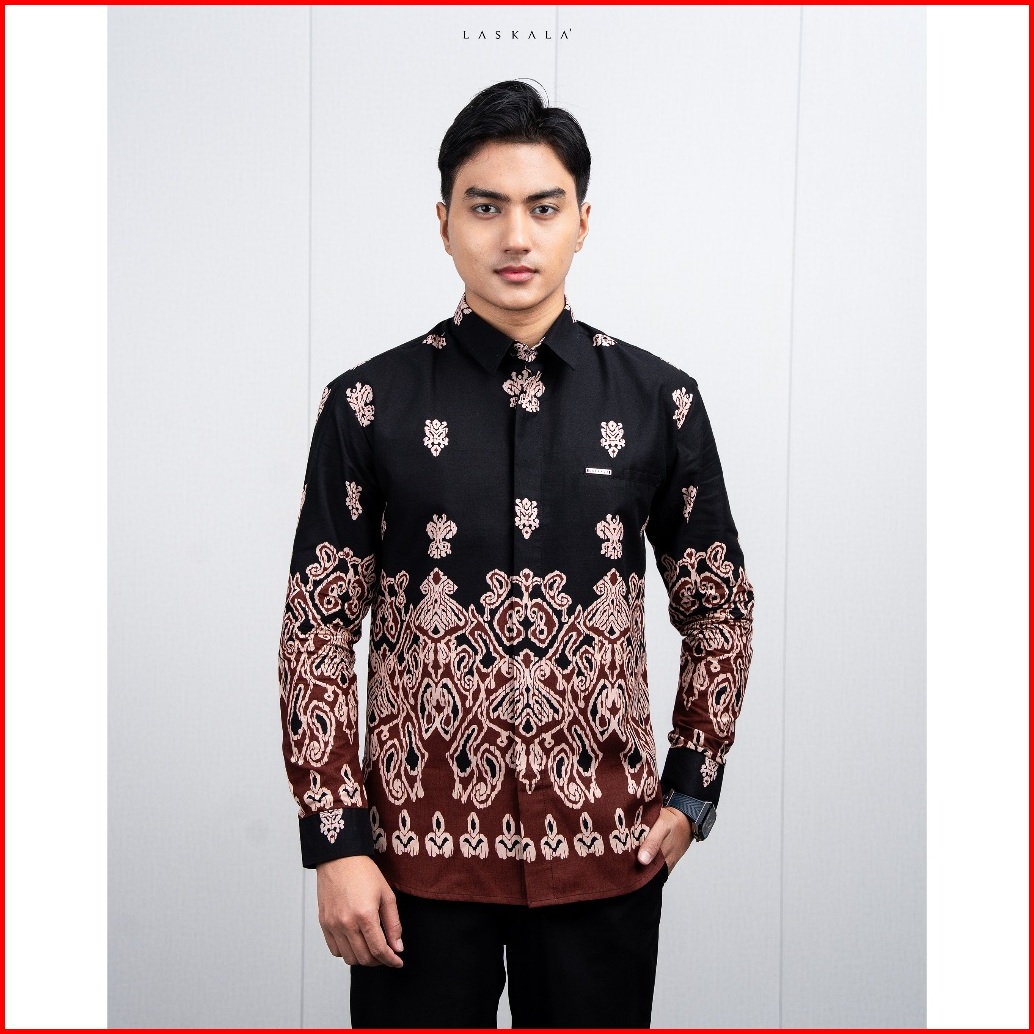 Laskala Batik Premium Waerebo Maroon Kemeja Batik Pria Slimfit Lengan Panjang