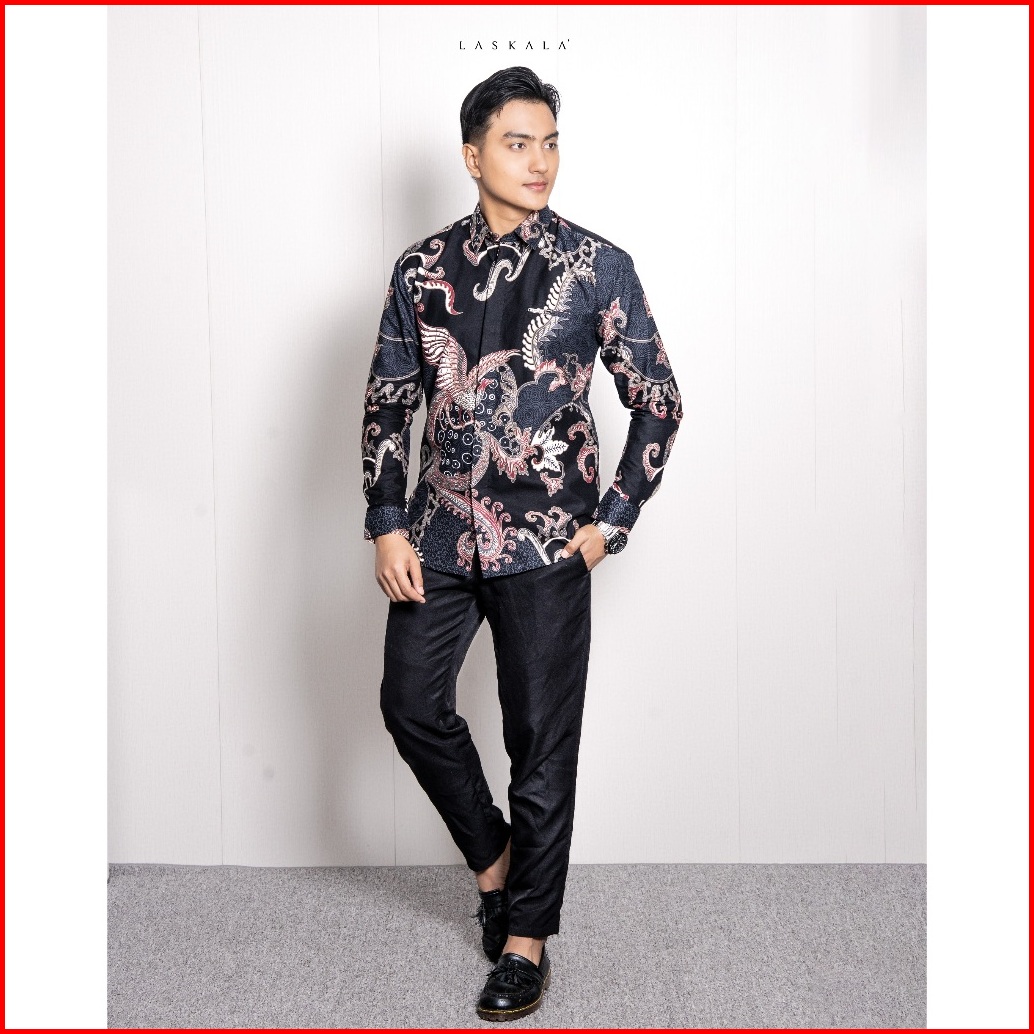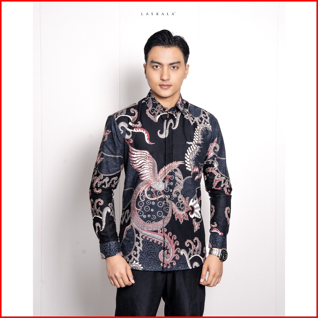 Laskala Batik Premium Dahana Black Kemeja Batik Pria Slimfit Lengan Panjang