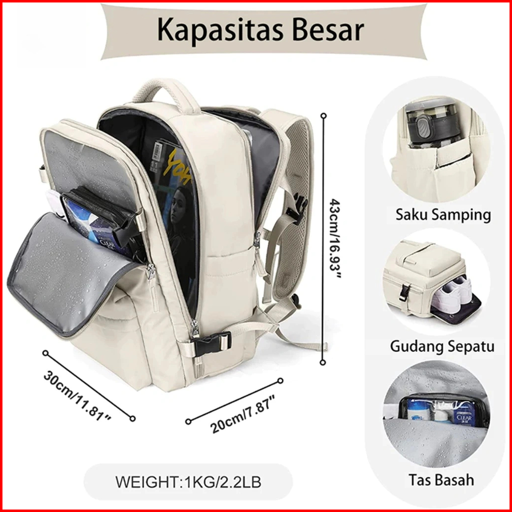Jzr Suitcase Travel Backpack Wanita 16 Inch 35-55 Liter Multi-fungsi Waterproof Laptop Backpack-c0015