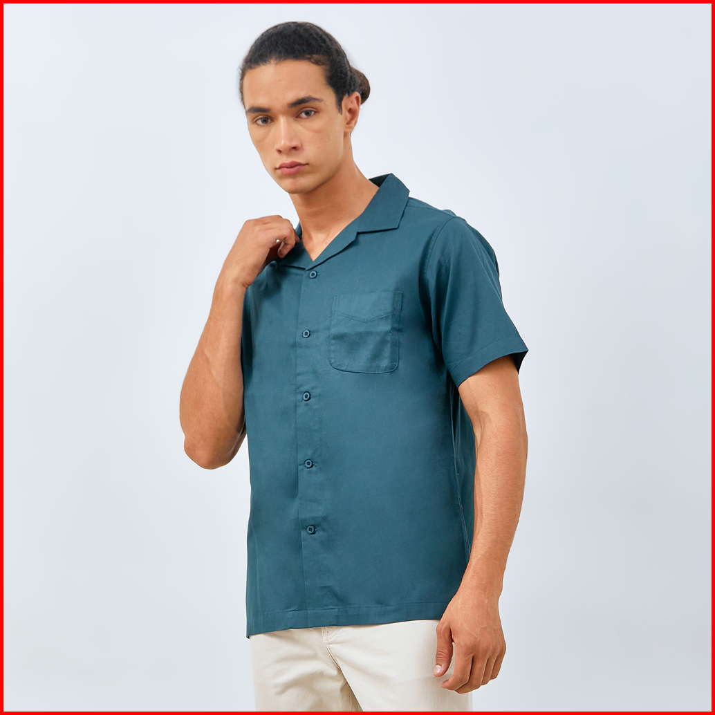M231 Kemeja Pria Basic Polos Hawaii Pendek Hijau Botol 0159g