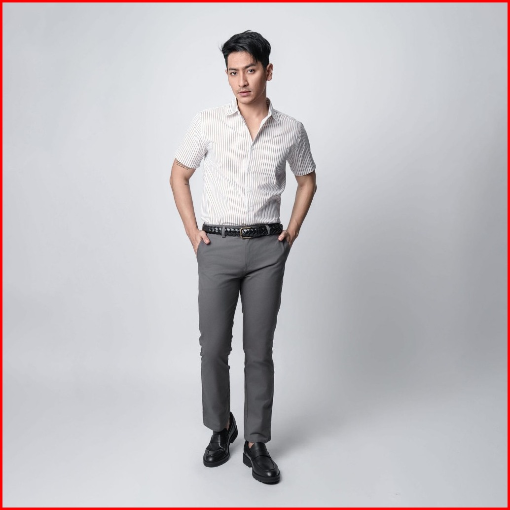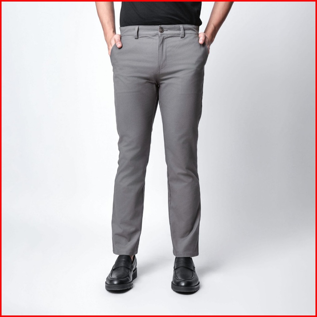 Vengoz Celana Pria - Mens Chino Pants Regular Straight Fit Cotton Twill Dark Grey