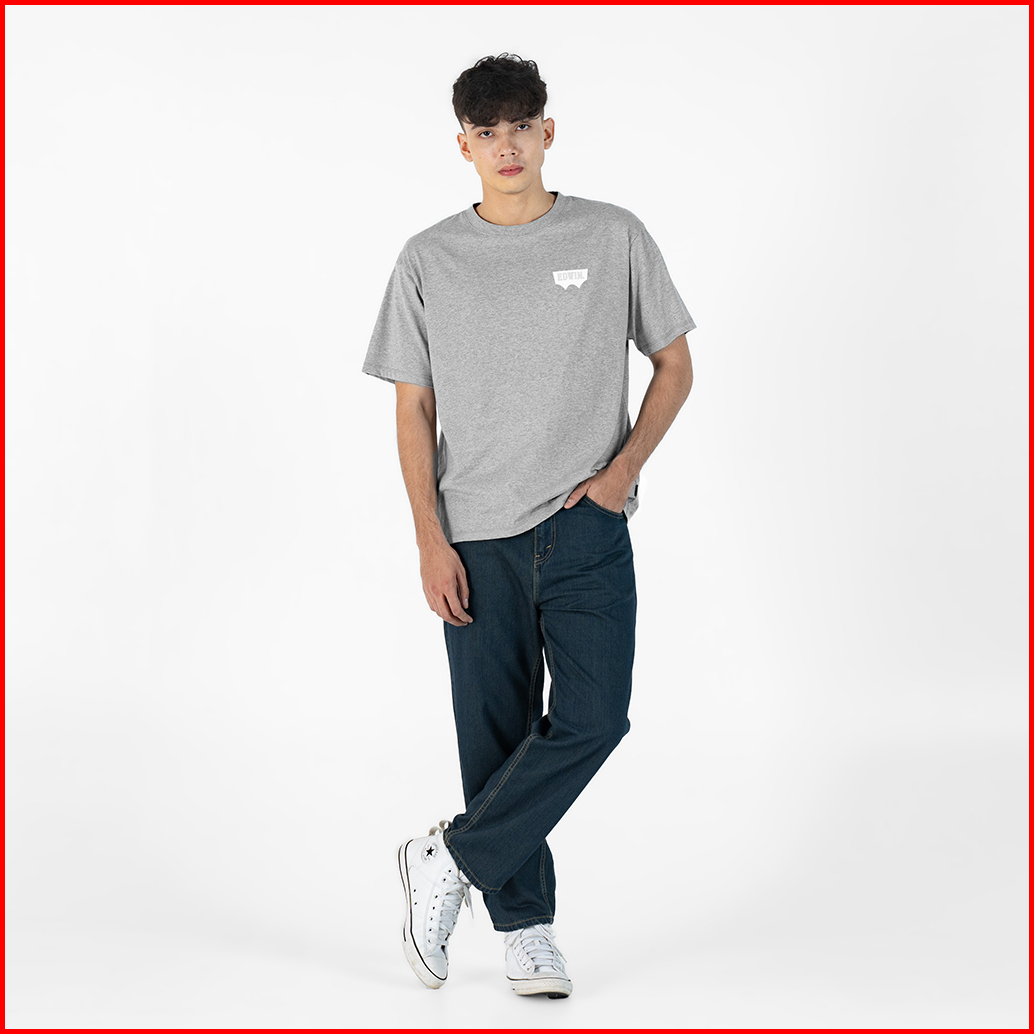 Edwin Jeans - Winger Light Grey Melange Tshirt Casual Baju Kaos Pria Lengan Pendek Atasan Warna Abu T-shirt Graphic Tee