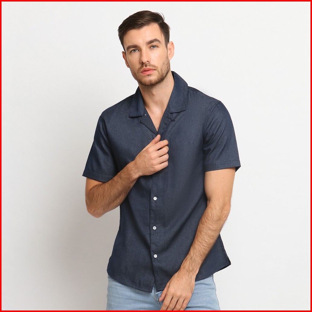 Vengoz Kemeja Hawai Jeans Pria - Cuban Denim Shirt