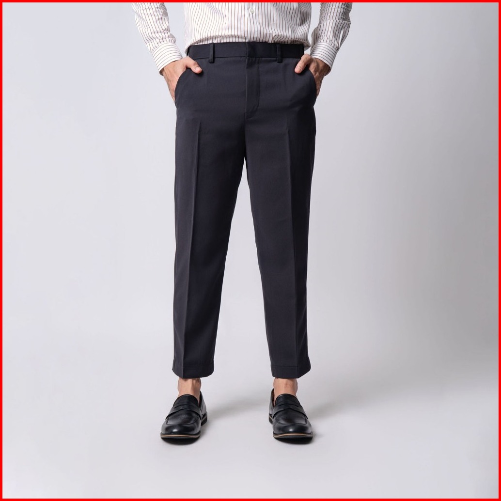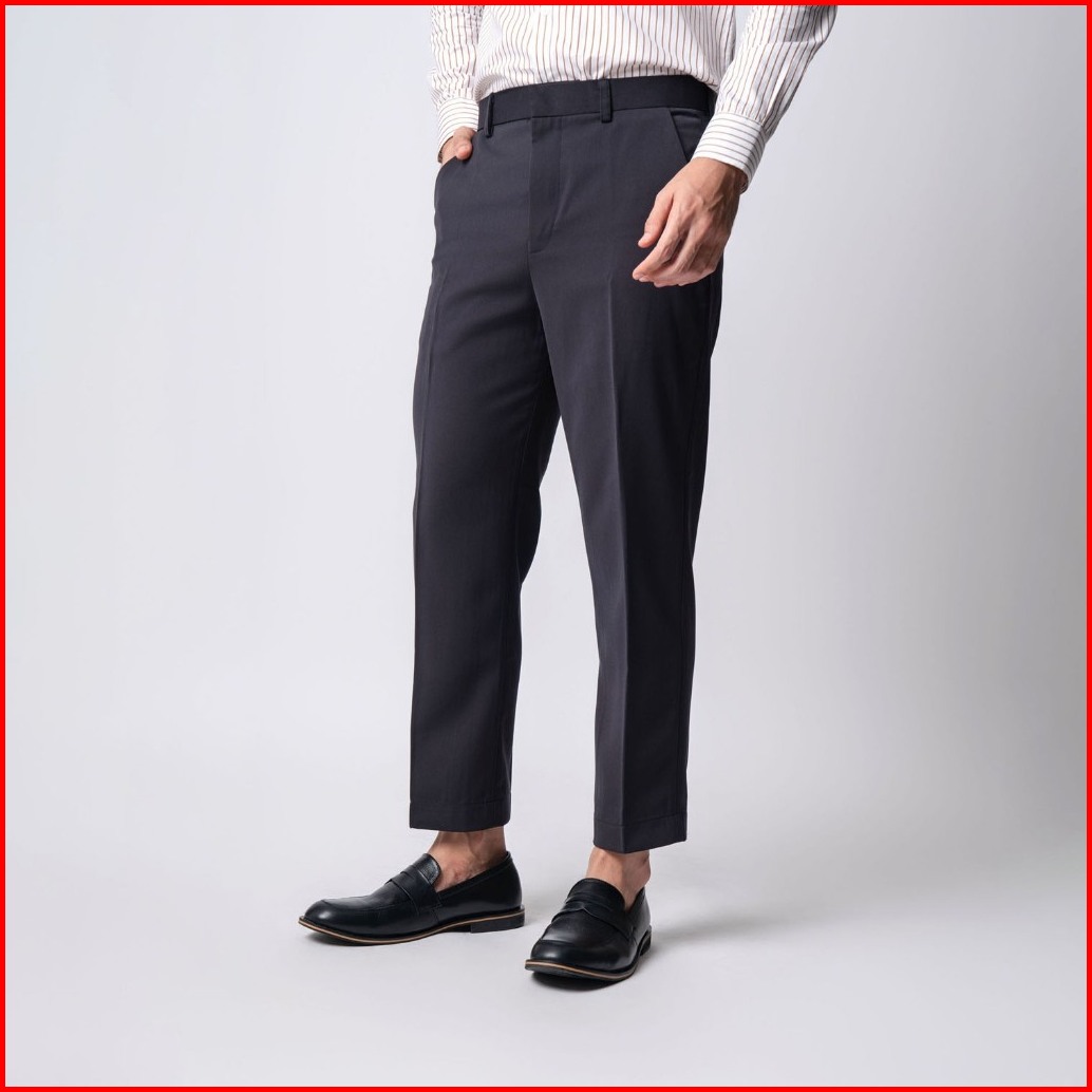 Vengoz Celana Formal Pria - Mens Formal Ankle Pants Straight Fit Dark Grey