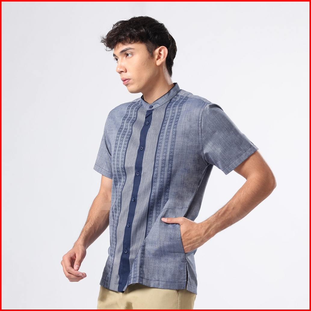 Edwin Jeans - Kemeja Koko Pria Lengan Pendek Ikram Light Blue Baju Muslim Pria