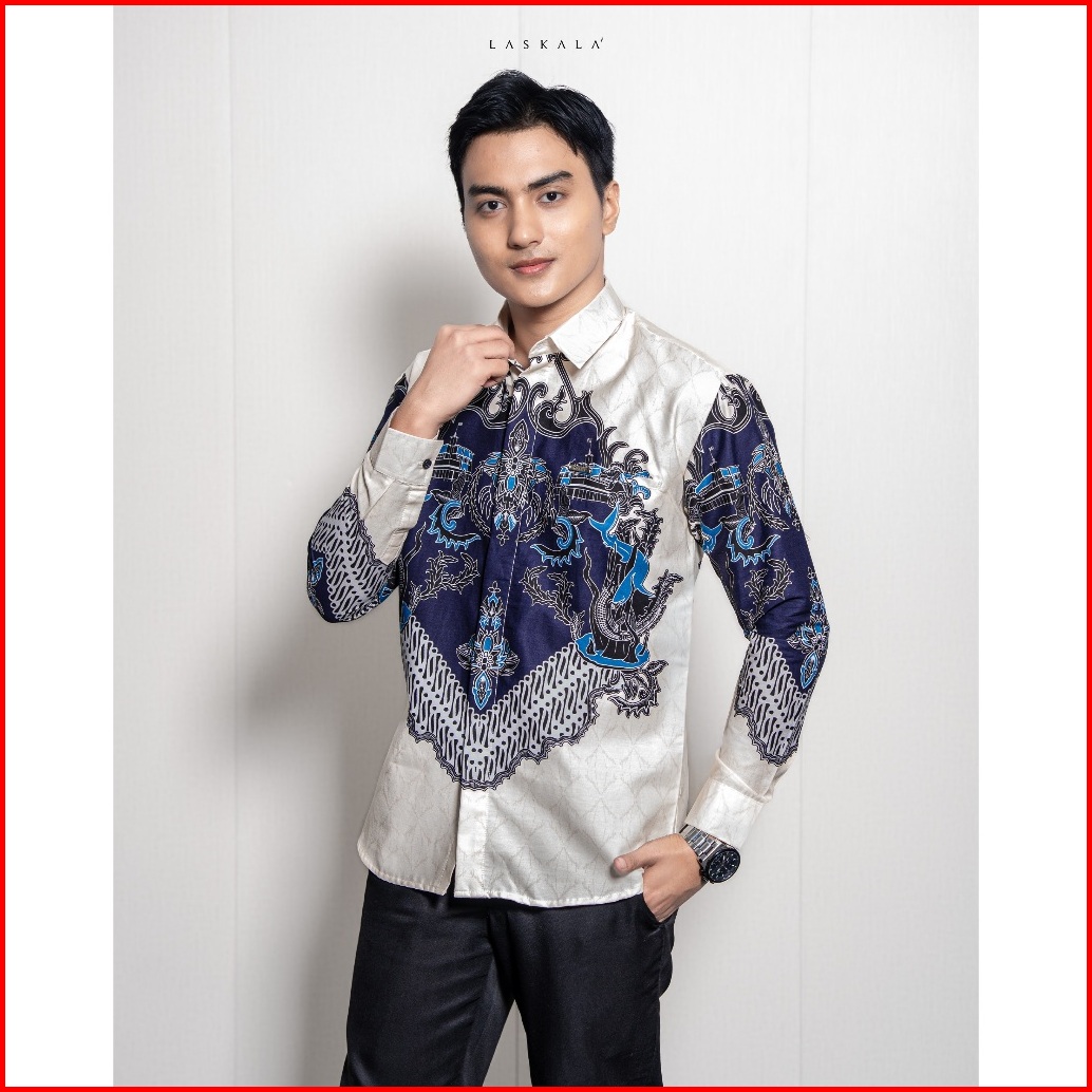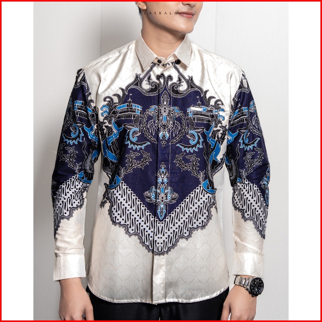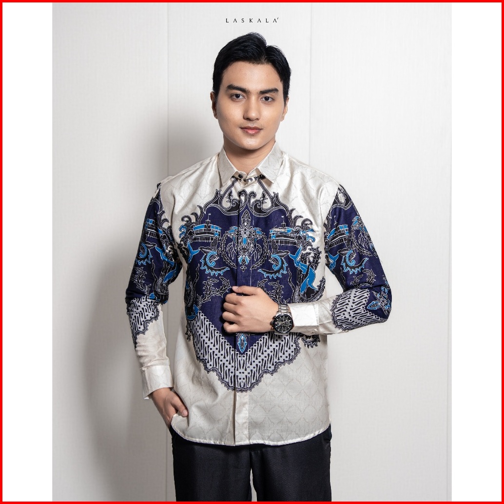 Laskala Batik Premium Surabaya Cream Kemeja Batik Pria Slimfit Lengan Panjang