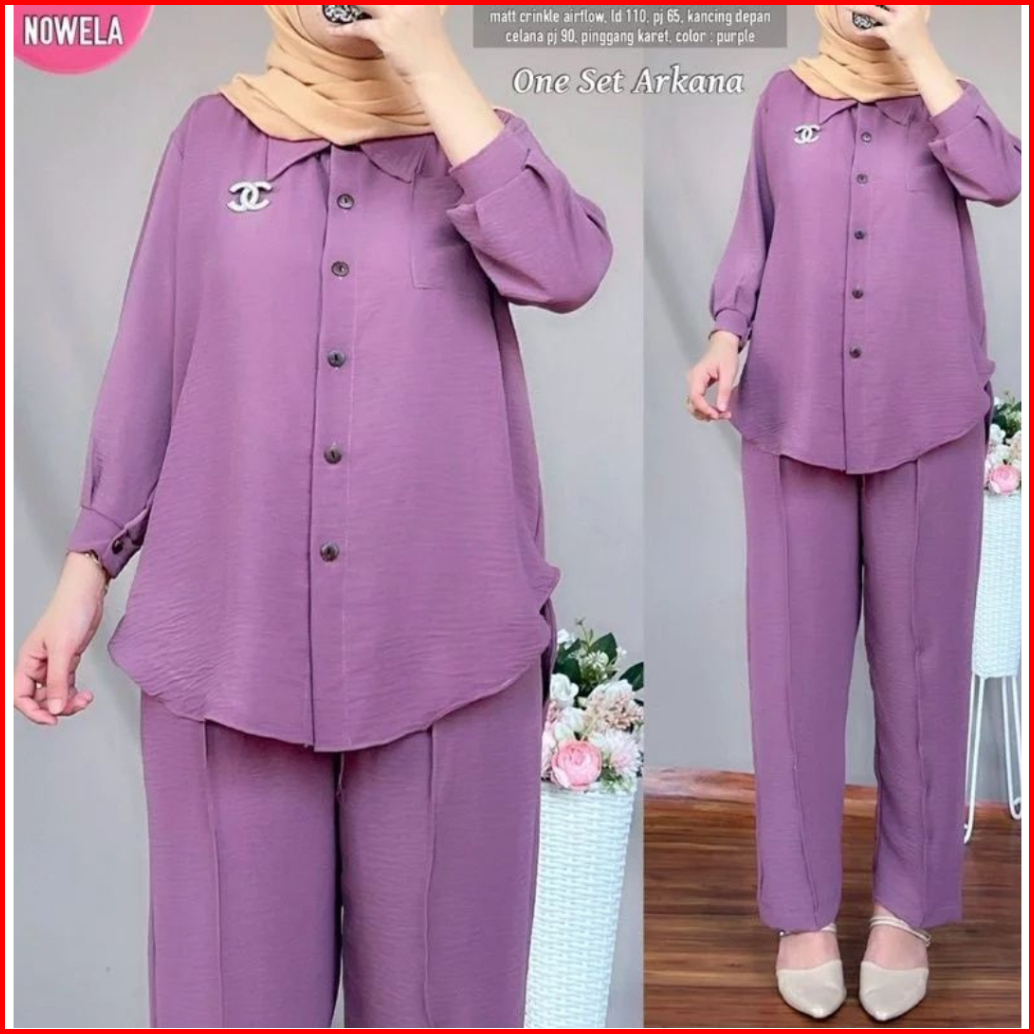 Dera Set Setelan Terbaru Crinkel Premium One Set Setelan Ootd Hijab