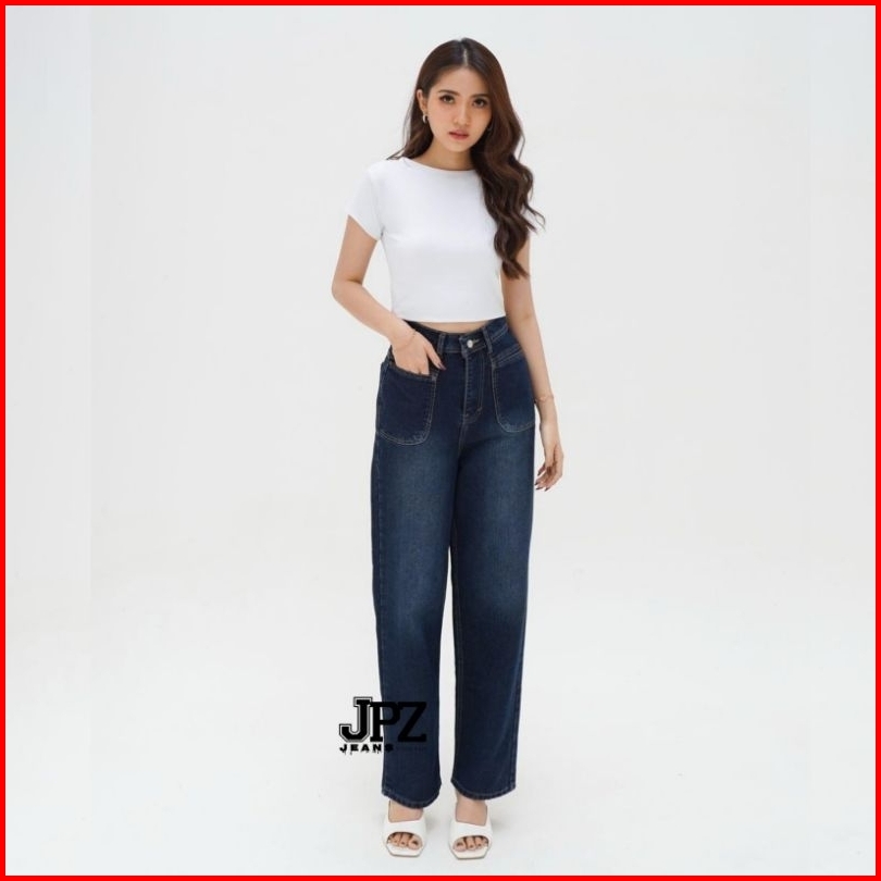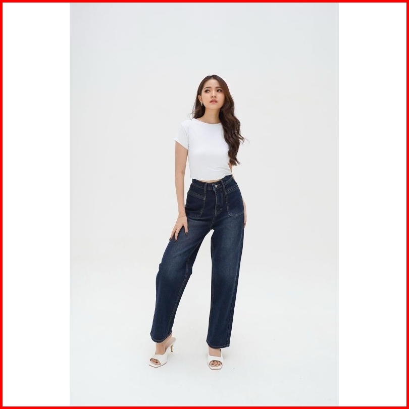 Celana Jeans Loose Poket Higwaist Korean Style Premium Tebal